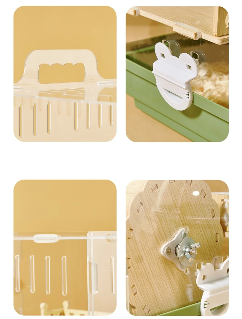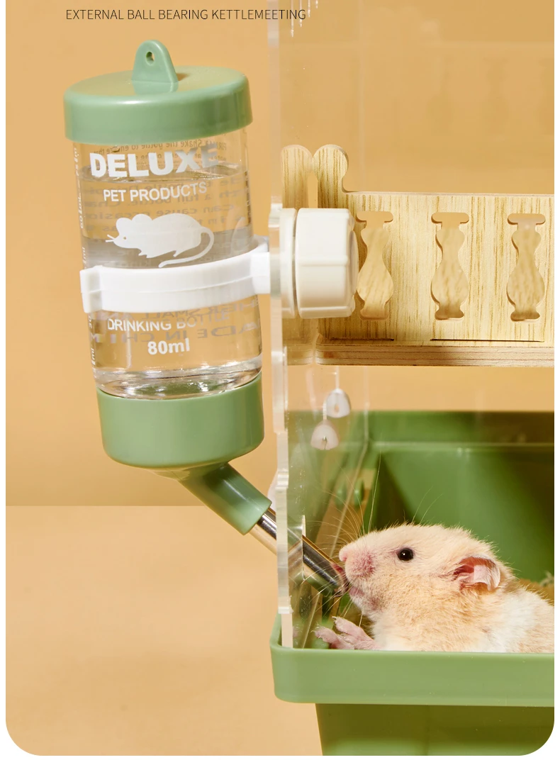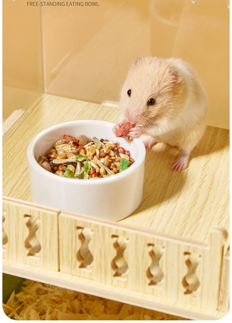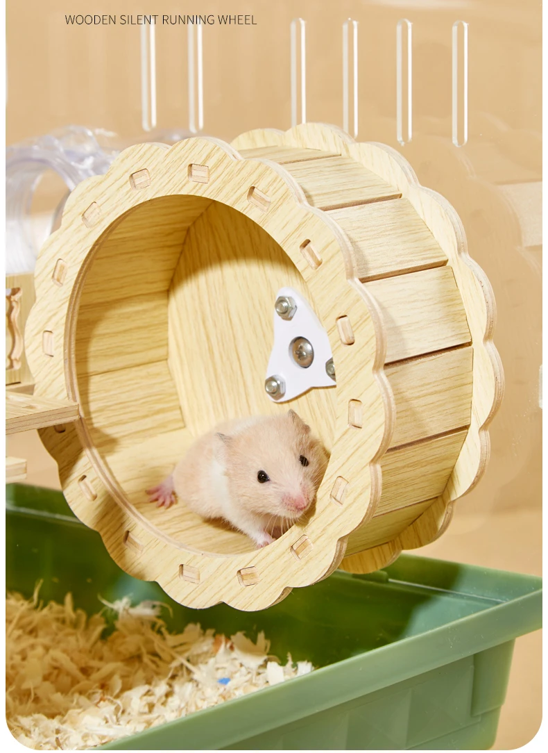 Arch bridge model: Käfig + European-style villa + large platform + solid wood ladder + 80ml kettle + arch bridge + anti-turnover food bowl + 13cm running wheel + external bathroom
