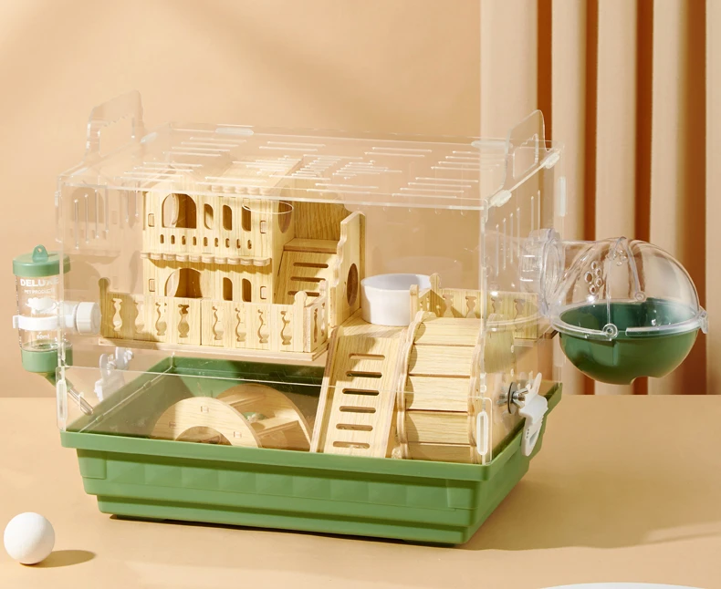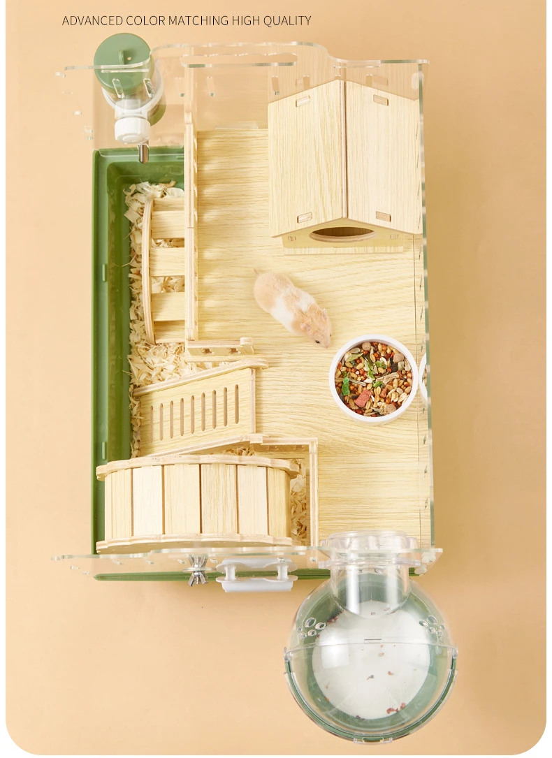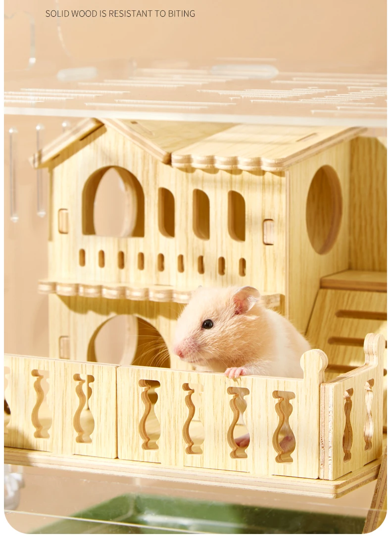 2 Layer Transparent Hamster Cage Acrylic Small Animal Hedgehog Rabbit Guinea Pig Villa Packaging Supplies Toy Set