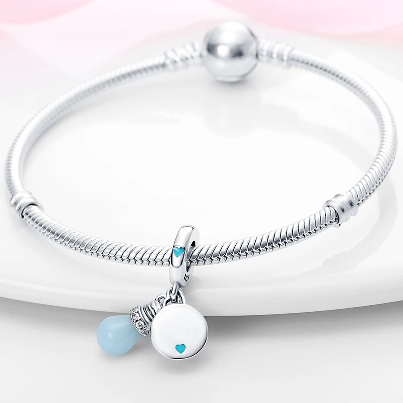 Introducing the latest hot-selling item of 2023: a blue glowing light bulb chameleon charm bead that fits Pandora bracelets. Gemacht aus 925 Silber, this pendant bead is a unique and stylish addition to any jewelry collection. Perfect for women who want to add a touch of charm and personality to their look. Get your hands on this trendy piece of jewelry and shine bright with the beautiful blue glowing light bulb chameleon charm bead.