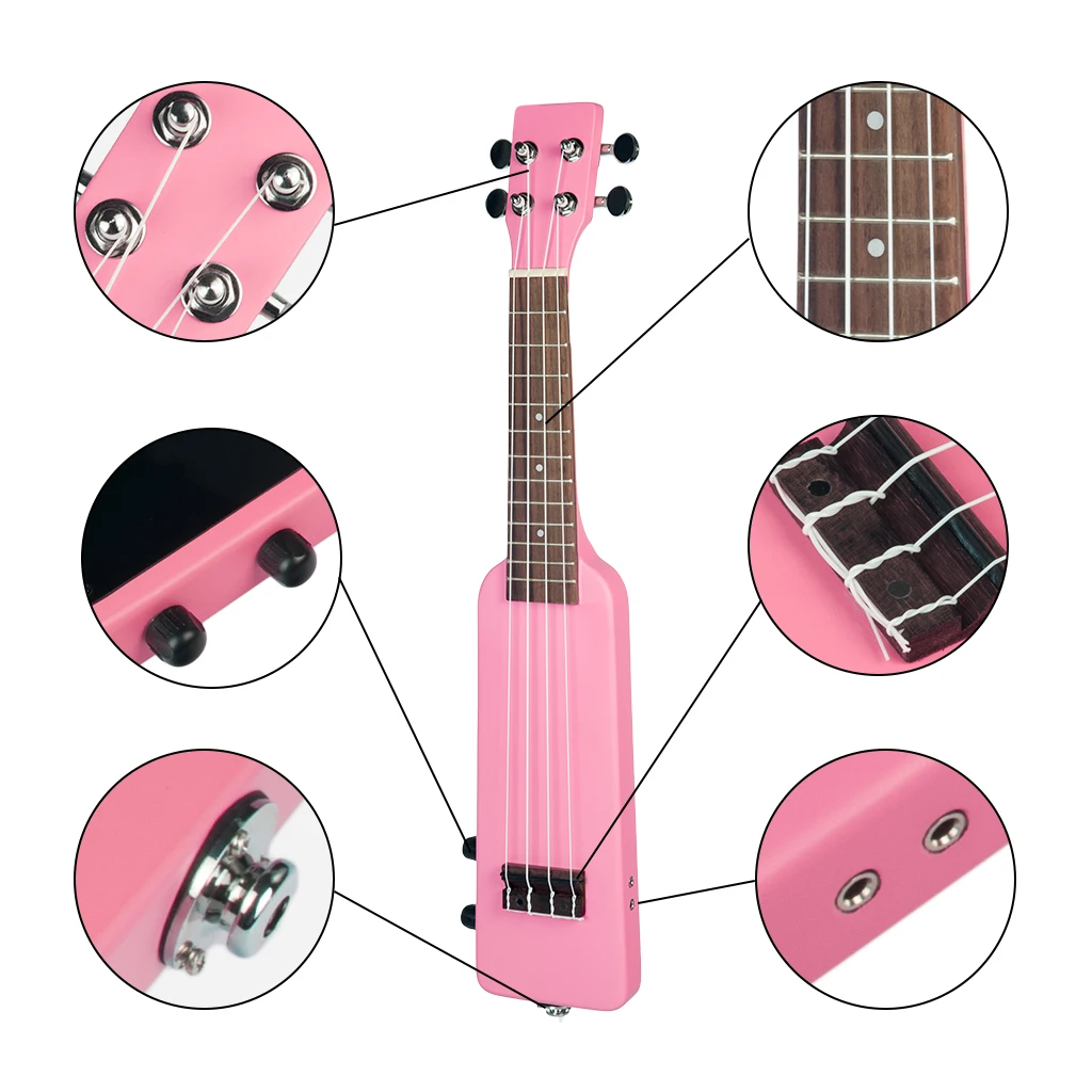 21“/23“ electric ukulele with creative bottle shape design, compact size and lightweight.