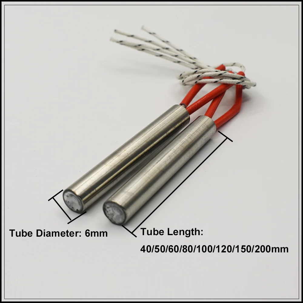 220V Elektrische Form-Heizpatronen, 12 mm Rohrdurchmesser. 50/60/80/100/120/150/200mm Länge Heizelement zylindrisch rohrförmig 5St