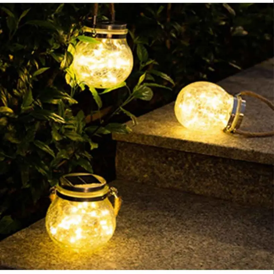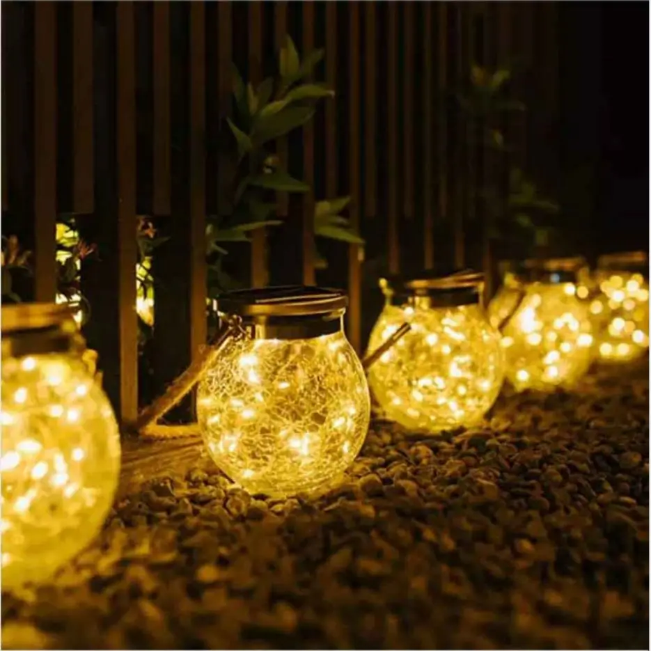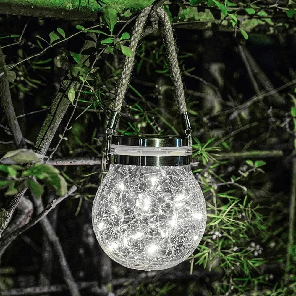 This solar-powered night light features 30 LEDs inside a crack ball glass jar, perfect for outdoor garden or Christmas decorations. The light does not come with the glass boat, but provides a beautiful and whimsical addition to any outdoor space. The light is energy-efficient and eco-friendly, making it a great choice for those looking to add a touch of magic to their outdoor decor.