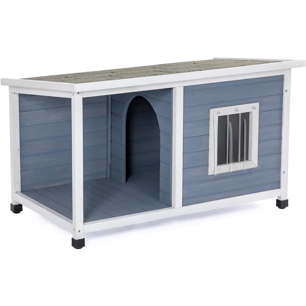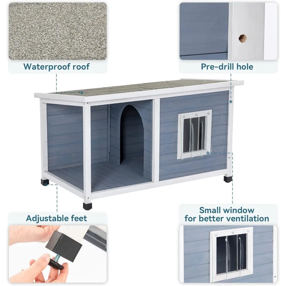 - [Intimate Design] The windows of the dog house outdoor allow pets to observe the external environment and ensure air circulation in the kennel. Equipped with an interior door to protect pets from wind and rain, keeping the dog house comfortable and dry.