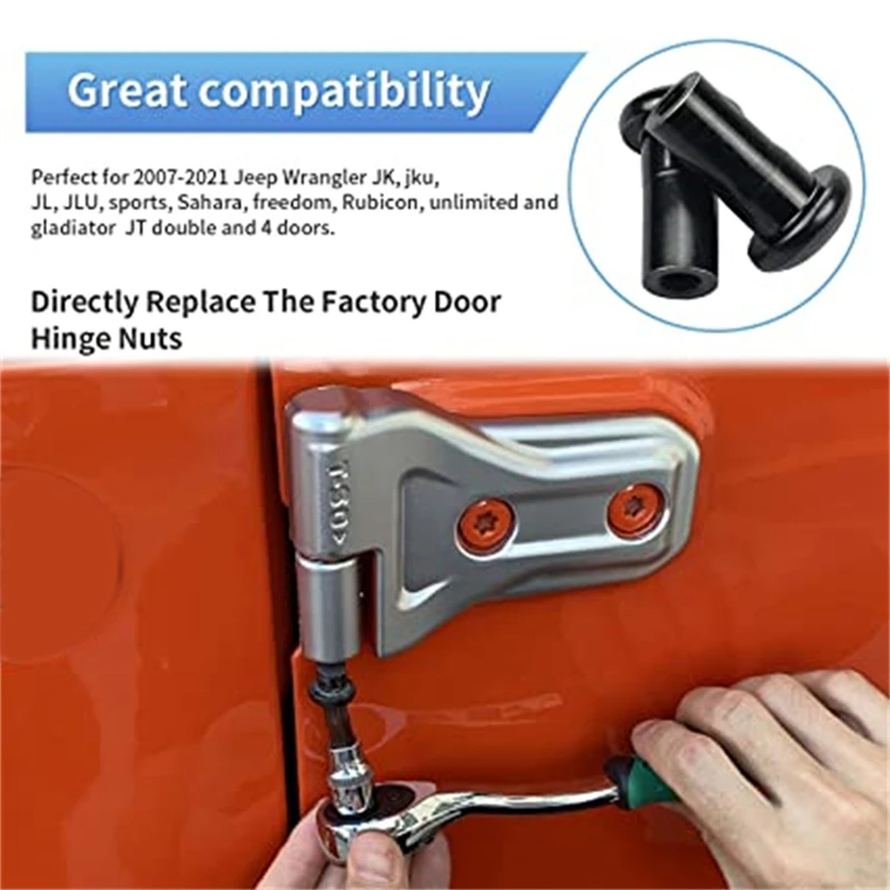 4Stück Türscharniermuttern für 2018-2022 Jeep Wrangler JL Rubicon Gladia…