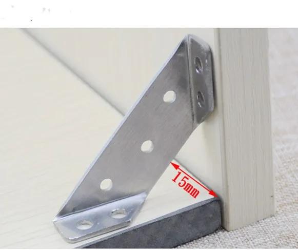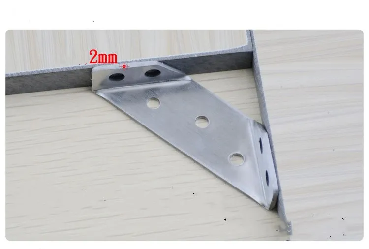 Dieser Inhalt handelt von einem Satz von 4 multifunctional stainless steel angle code right angle fixed brackets used for attaching furniture and wood boards. These hardware accessories are designed to provide support and stability to various structures. Aus dauerhaftem Edelstahl hergestellt, they are reliable and long-lasting. The brackets can be used for multiple purposes, making them versatile and useful for a variety of projects.