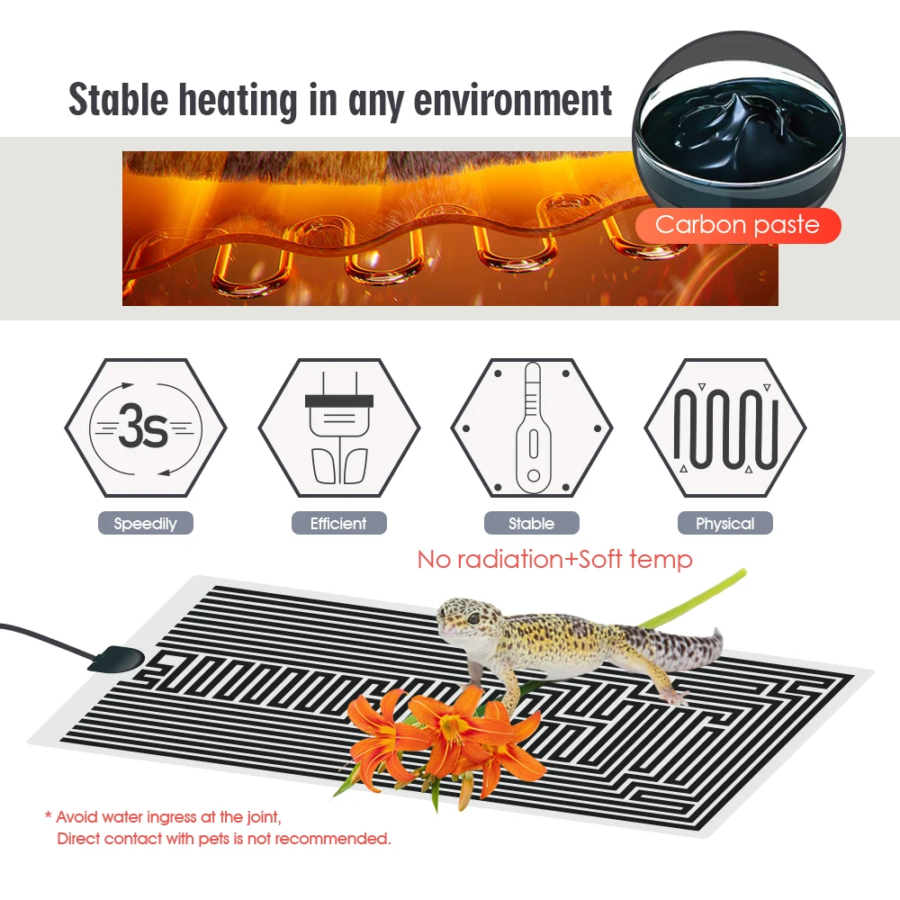 01. Please put the heating pad outside the glass breeding box for use;