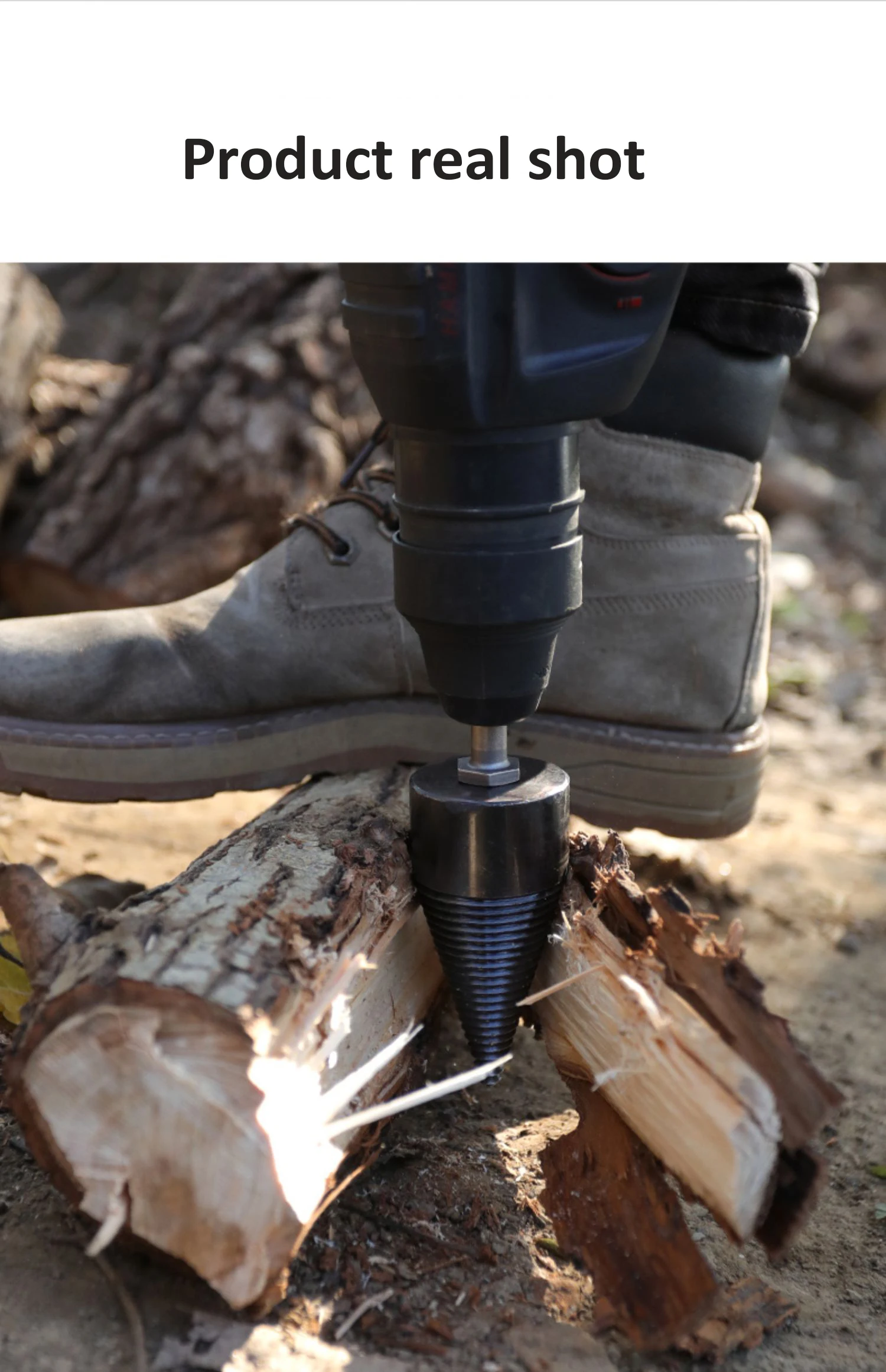 1.Das Bohrer hilft Ihnen, einfach und schnell Brennholz zu hacken, viel Zeit und Mühe sparen.