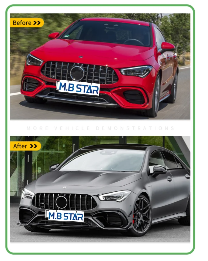 Upgrade the appearance of your W118 C118 Cla 45 2020-2021 with ABS front bumper grill air vent hood kits in bright black. These divider kits are designed to enhance the overall look of your vehicle while providing a sleek, stilvolles Aussehen. Made from high-quality ABS materials, these kits are durable and long-lasting. Add a touch of sophistication and elegance to your vehicle with these easy-to-install kits that will surely turn heads on the road. Upgrade your car’s front bumper with these stylish accessories that are sure to impress.