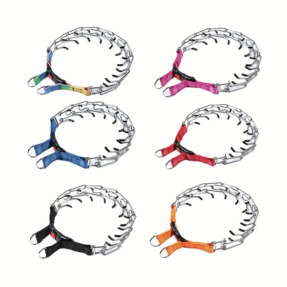 Verstellbarer Metallhundtropfen -Prise -Trainingshalsband mit bequemen Gummispitzen