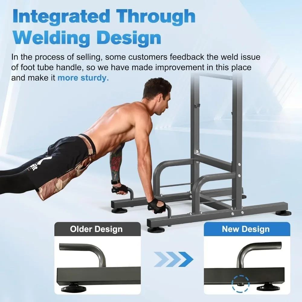 - 💪【Suction Cups】This dip stands owns the suction cups in the bottom, which can adjust the flatness that contacts with the ground. Safety and strong stability.