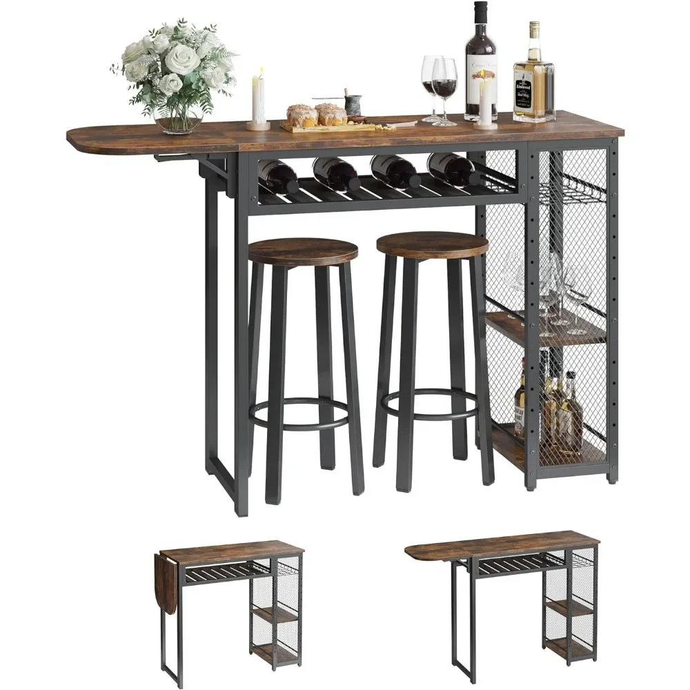 Bar Table and Chair Set: Upgrade your dining room with this stylish and functional expandable dining table set. This set includes a bar table and two chairs, making it perfect for small spaces or cozy dining areas. The expandable feature allows you to easily accommodate additional guests when needed, while the sleek design adds a modern touch to any home decor. Aus hochwertigen Materialien hergestellt, this dining room set is durable and built to last. Invest in this bar table and chair set for a stylish and versatile dining experience.