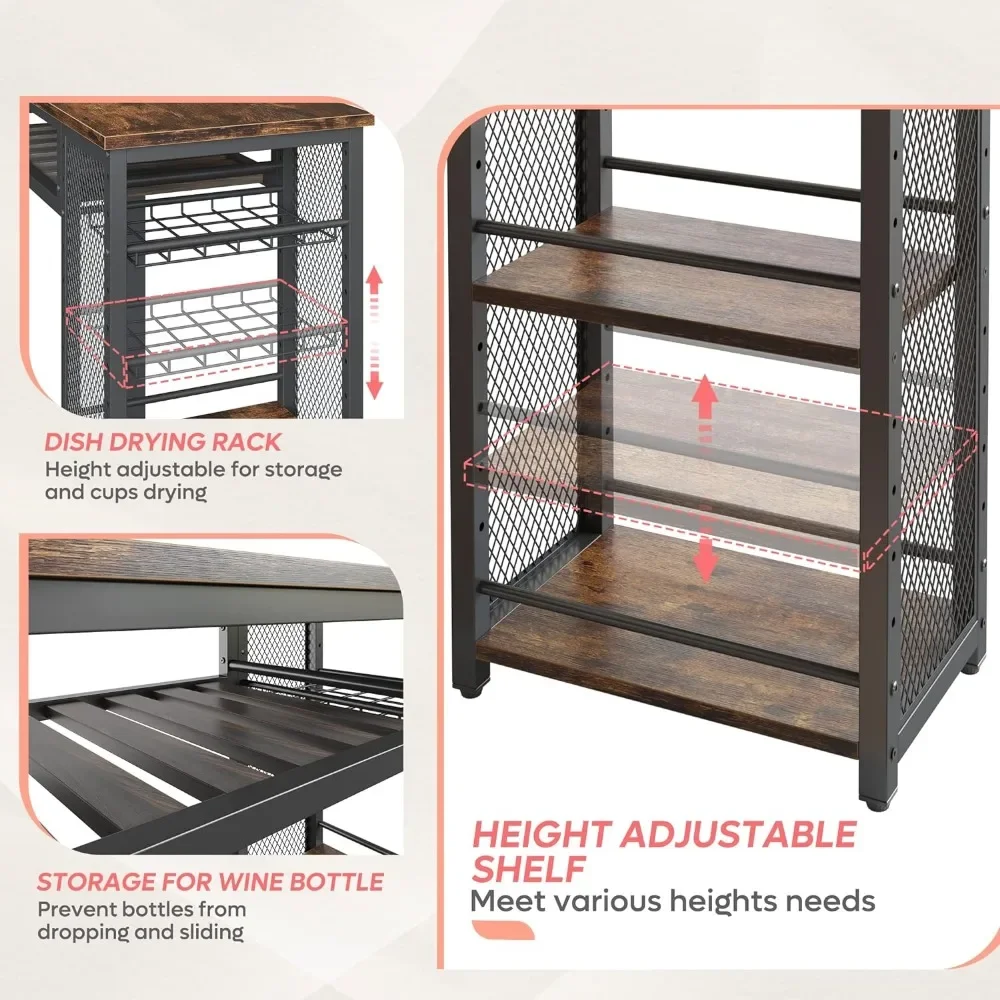- 3 Tier Adjustable Shelves: The bar table with height-adjustable shelves has roomy storage space. There are also baffles on the side to prevent items from falling.