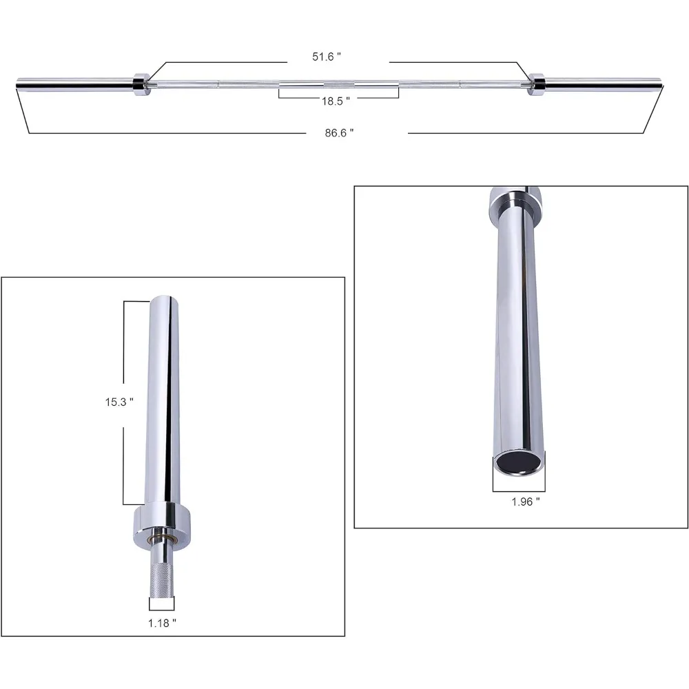 - 0.97″ oder 1,97″ Durchmesser des Stangenendes, um sicherzustellen, dass die Stangen auf alle Standardplatten mit Löchern passen 1″ oder 2″; Kann auch mit Hantelplatten verwendet werden