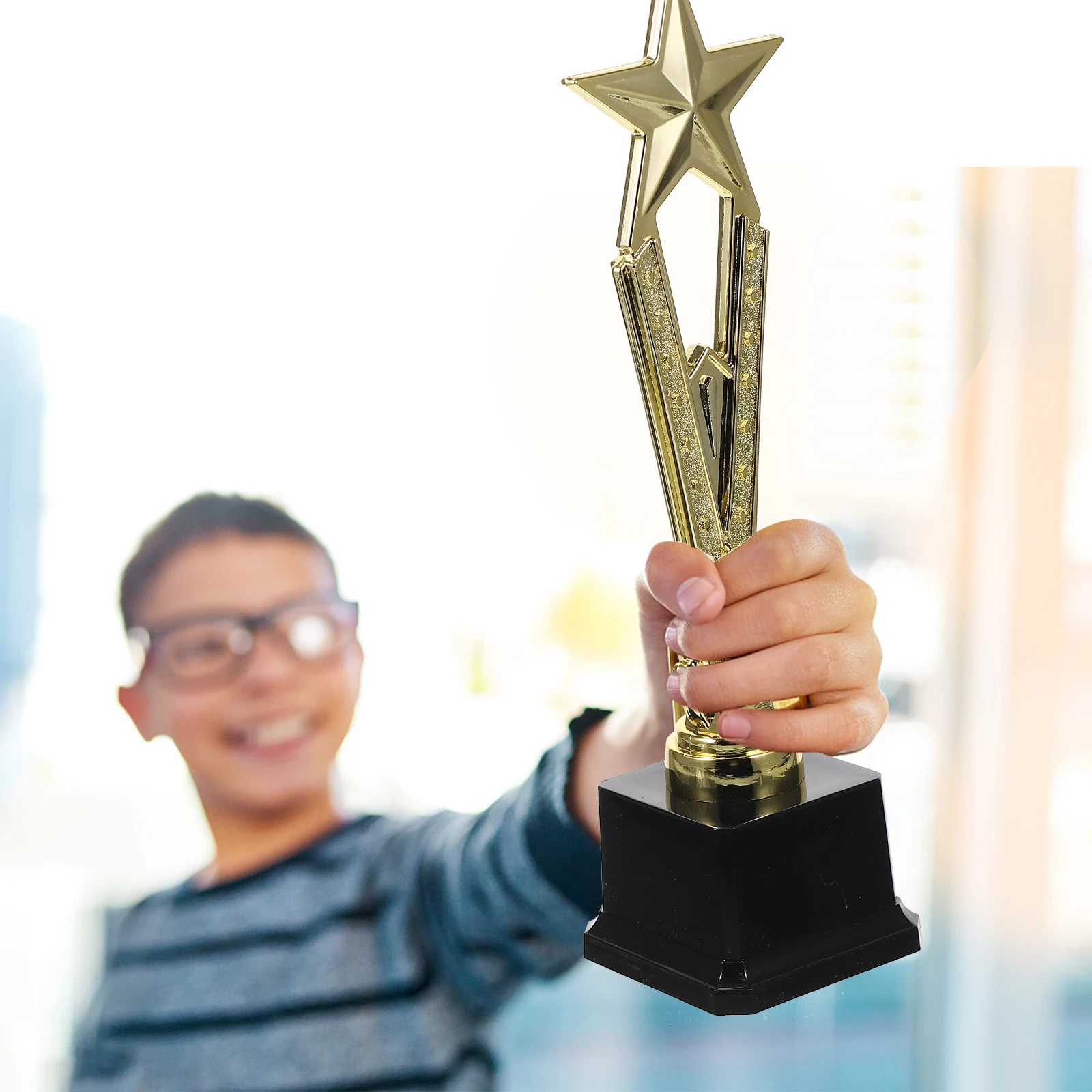 This decorative golden color trophy is designed into a creative pentagram shaped playing shape, made of high-grade plastic material for a long using time. The trophy is a great favor and encouragement for some competition for your kids. They can have the recognition they deserve and have more good moods through this spectacular trophy and award.