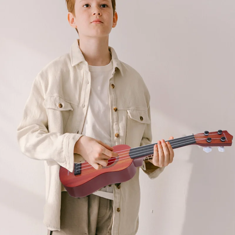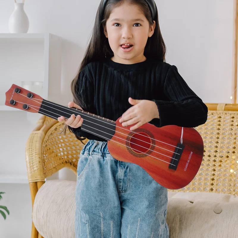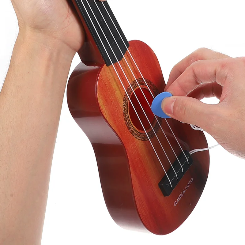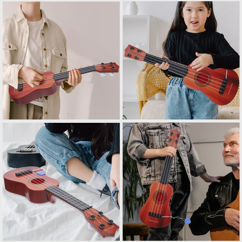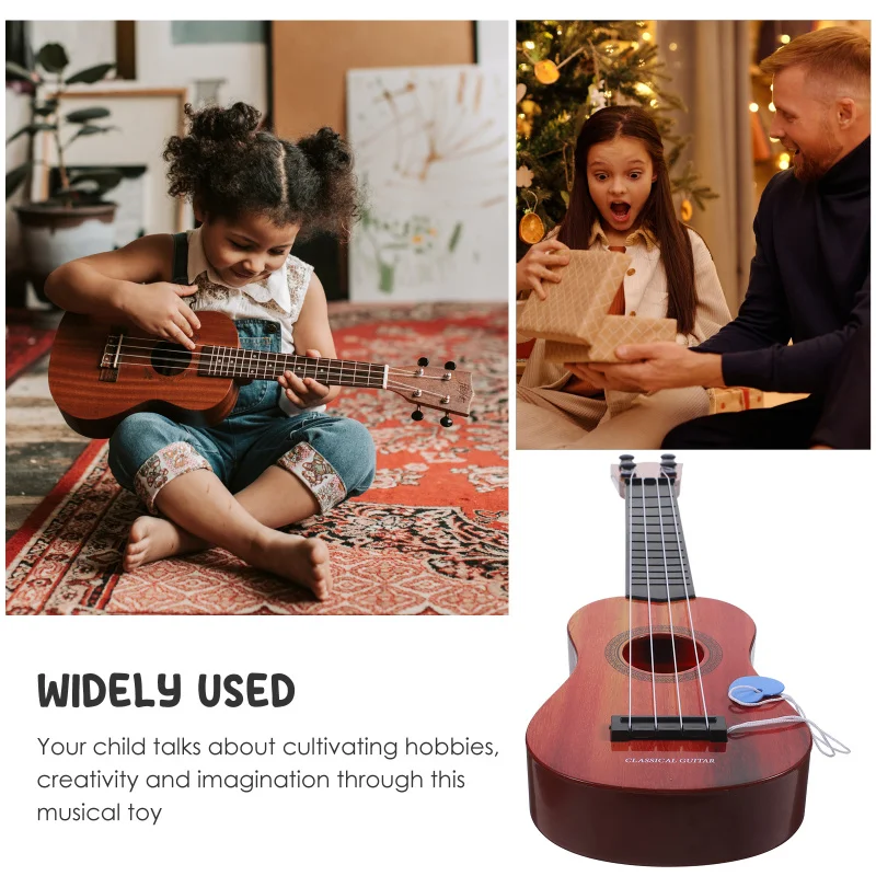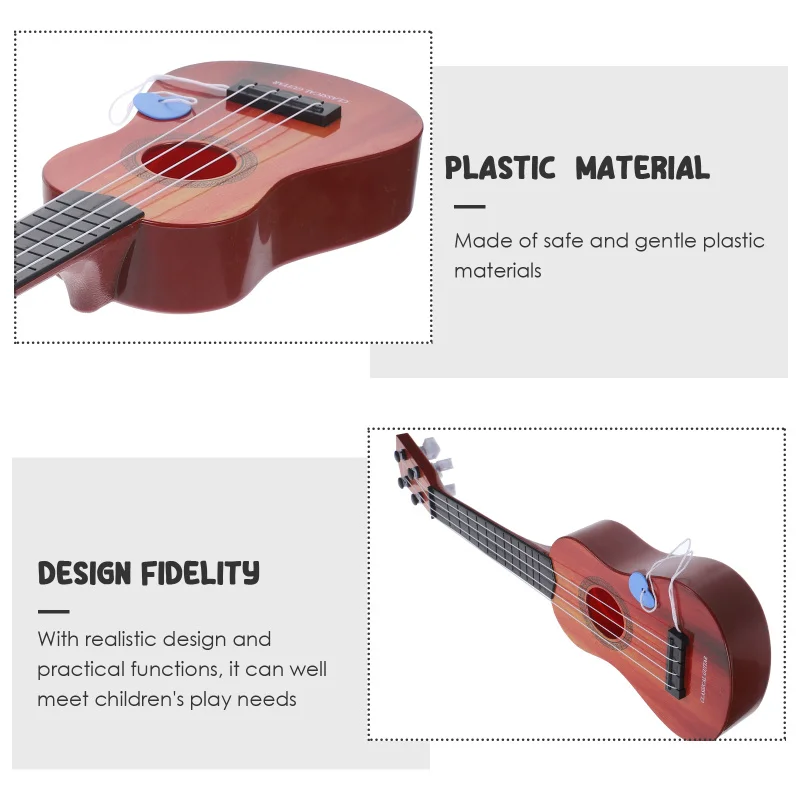 Kids Guitar Ukulele Toy Simulation 4 Strings Children Musical Instruments Educational Learning with Picks Primary Tutorial for Toddler Beginner|Kids Ukulele Guitar Toy 4 Strings Mini Guitar Children Musical Instruments Educational Learning Toys with Picks and for Toddler Kids Boys Girls Beginner Starter|Premium plastic, polished smooth surface, rounded edge without any burr. You dont need to worry that it will hurt the baby and kid.|Mainly stimulate your childs imagination, develop hobbies, promote exercise, and improve hearing.|WELL FINISHED FRETBOARD: Come with Smooth fretboards every side detail, you can roll over the frets and do not need to worry be scratched. The fret wires ends can be a very troubling point of contact with inexpensive instruments. These fret wires have been manicured.