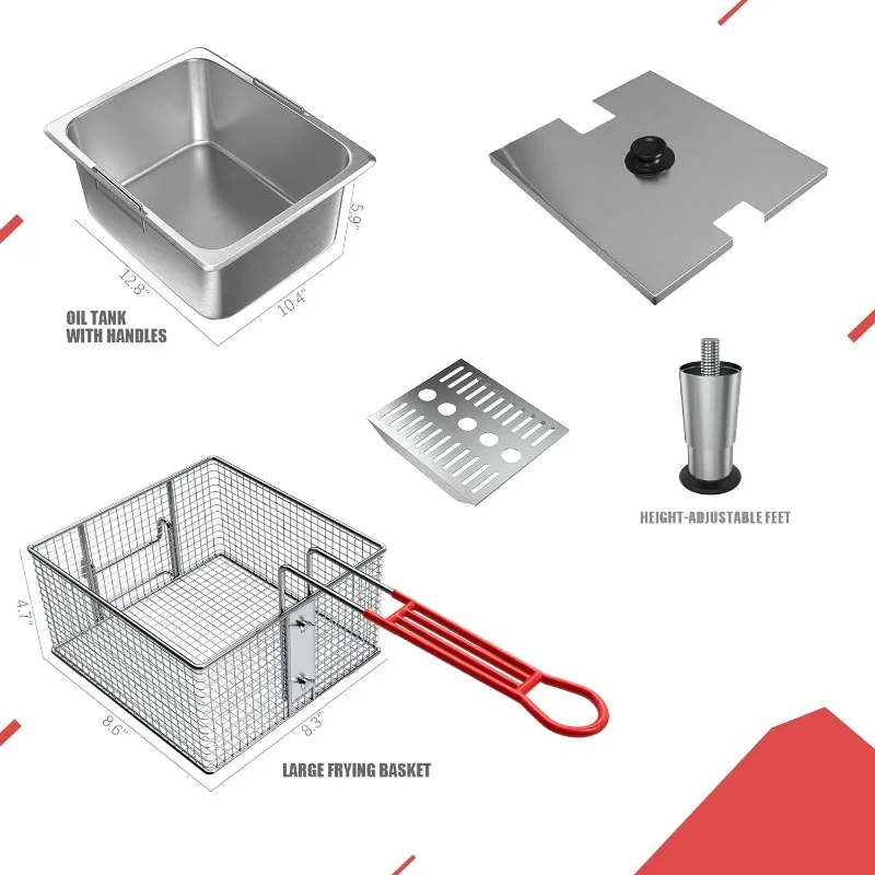 - PROFESSIONAL DEEP FRYER – This stainless steel deep fryer is durable for both commercial and home use. It is made of commercial-grade stainless steel, the edges finishing are smooth and comply to ETLus standard. Perfekt für kommerzielle Verwendung, wie Restaurants, Supermärkte, Fast Food steht, Parteien. Suitable for buffalo wings, Huhn, dumplings, Eibrötchen, Mozzarella Sticks, jalapeno poppers
