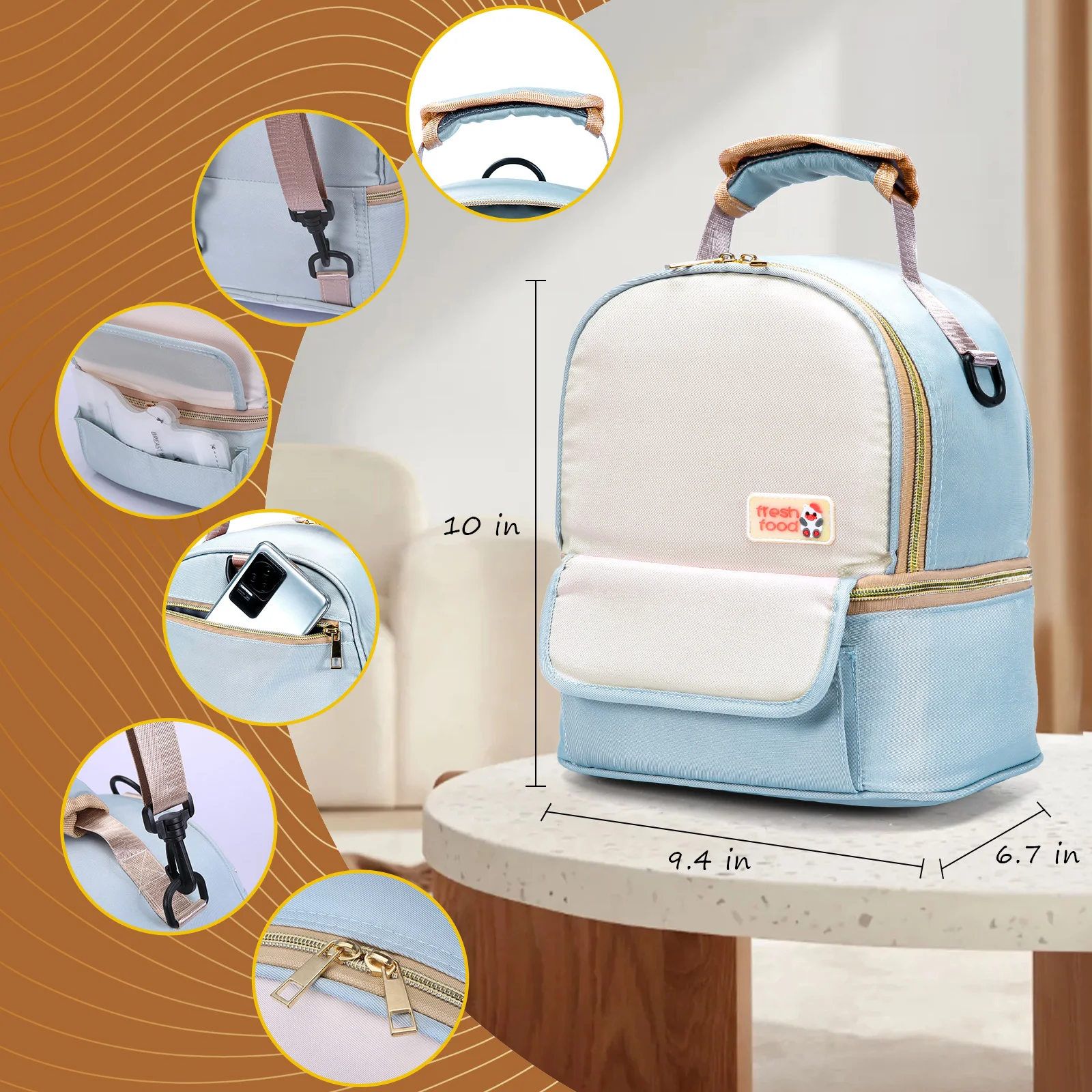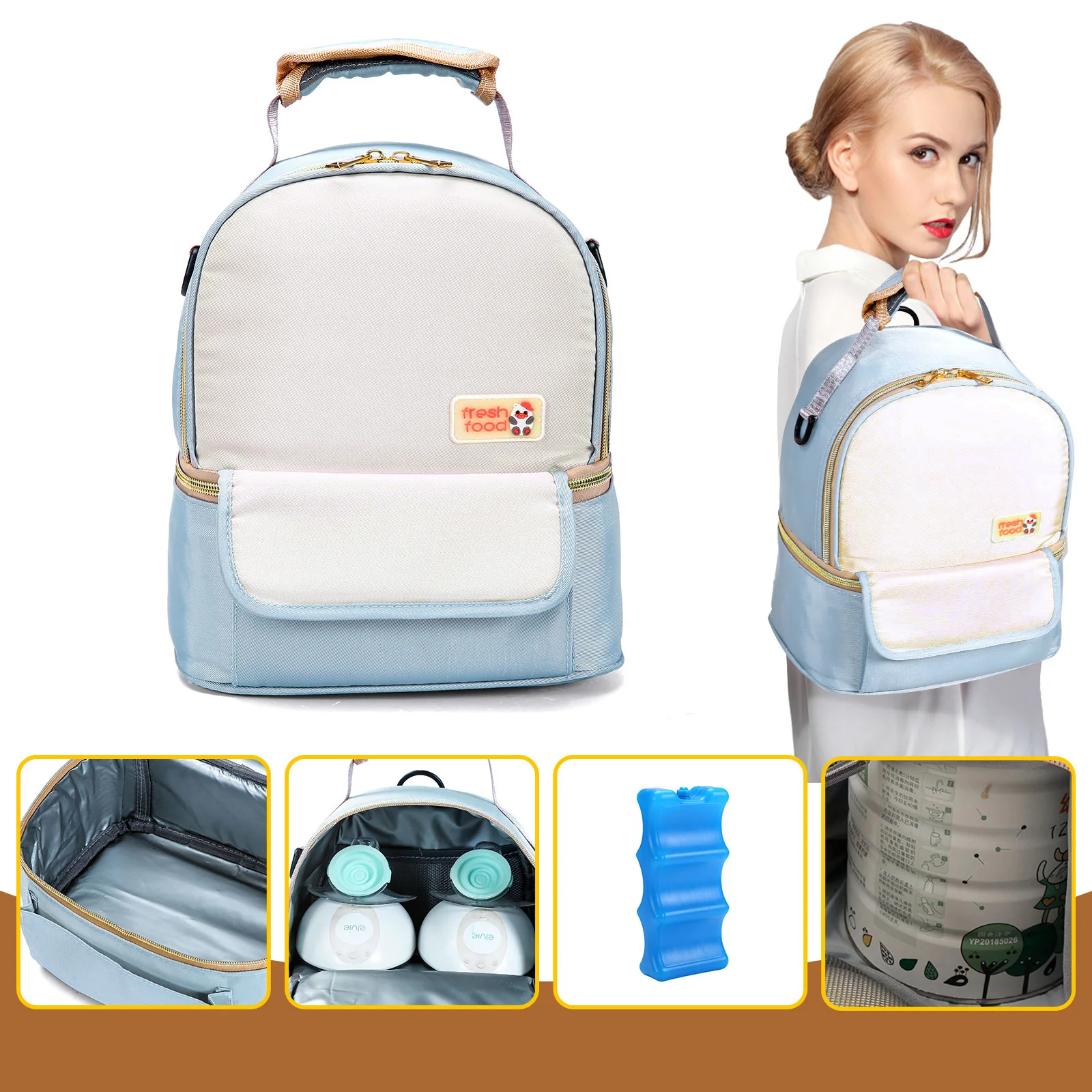 3. DUAL COMPARTMENTS: The upper compartment of our bag is specially designed to hold breast pumps and accessories, while the lower compartment is perfect for storing baby bottles. Not just for breastmilk, this versatile bag can also be used as a lunch bag to keep fruits, lunches, or other foods cool.