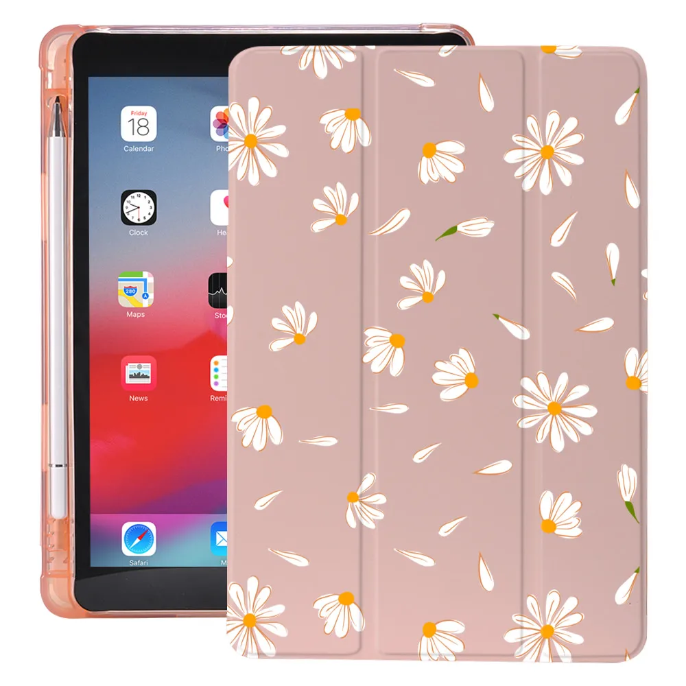The Cute Daisy Flowers iPad case is compatible with various models including the iPad 8th Generation, iPad Pro 12.9 2020, iPad Mini 5, iPad 10.2 7th Generation, iPad Pro 11, iPad Air 4, iPad Air 2, and iPad 10.5 6th Generation. Made of silicone, this stylish and protective case features a cute daisy flower design. It is suitable for a range of iPad models, providing protection and a touch of floral charm. Perfect for anyone looking to add a touch of personality to their device while keeping it safe and secure.