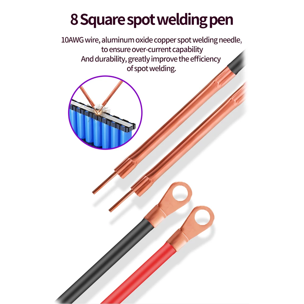 8. Thickened pure copper welding pen design, with alumina copper spots welding needles to ensure high current passing capacity and durability.