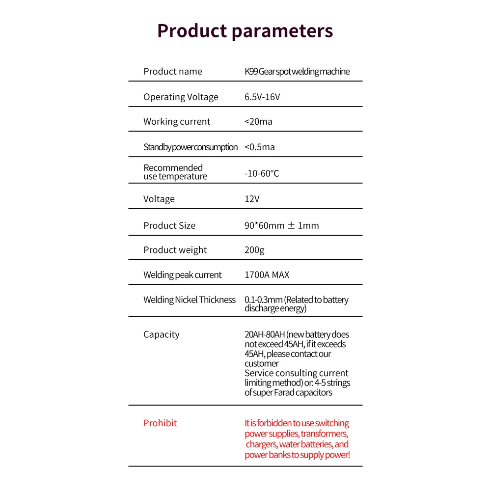 3. High power output design, 99 gears of output power adjustable, more accurate welding, suitable for continuously welding thousands of points on nickel/nickel-plate sheet.