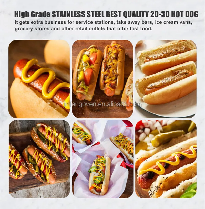The Electric Commercial 4 Sticks Hot Dog Maker is a machine designed for efficiently preparing hot dogs. It features a bun warmer, sausage roller grill, and can cook up to 4 Hot Dogs sofort. This product is ideal for businesses or events that serve hot dogs frequently, providing a quick and convenient way to prepare them. With this hot dog making machine, users can easily cook and serve delicious hot dogs without the hassle of traditional methods.