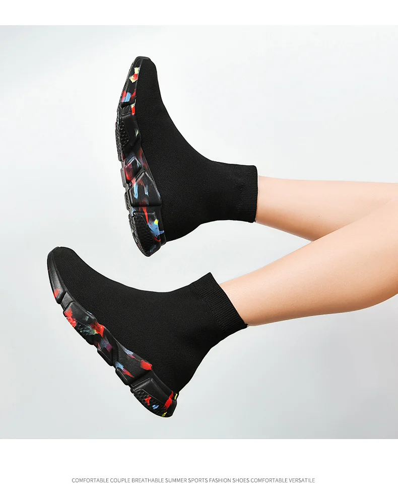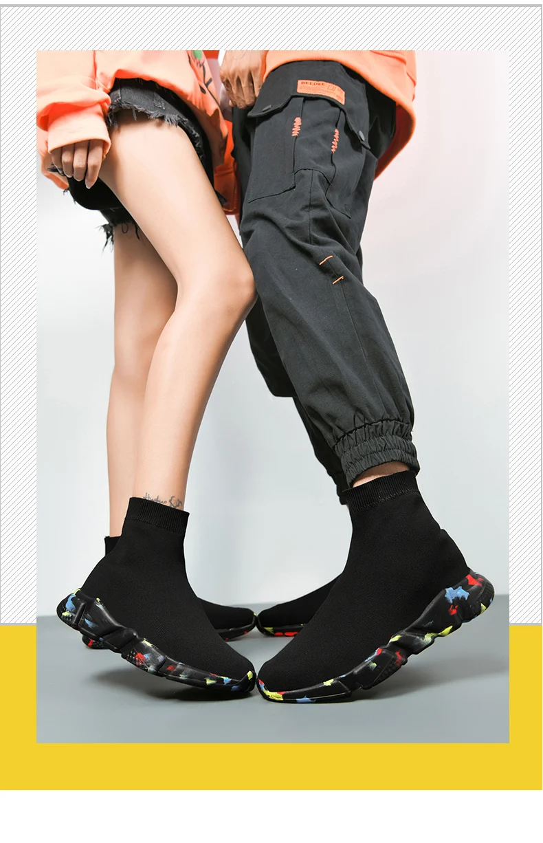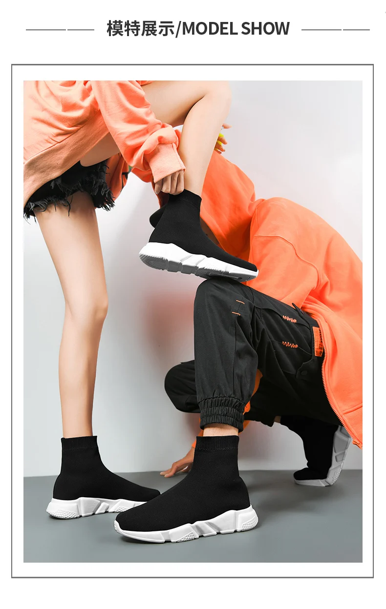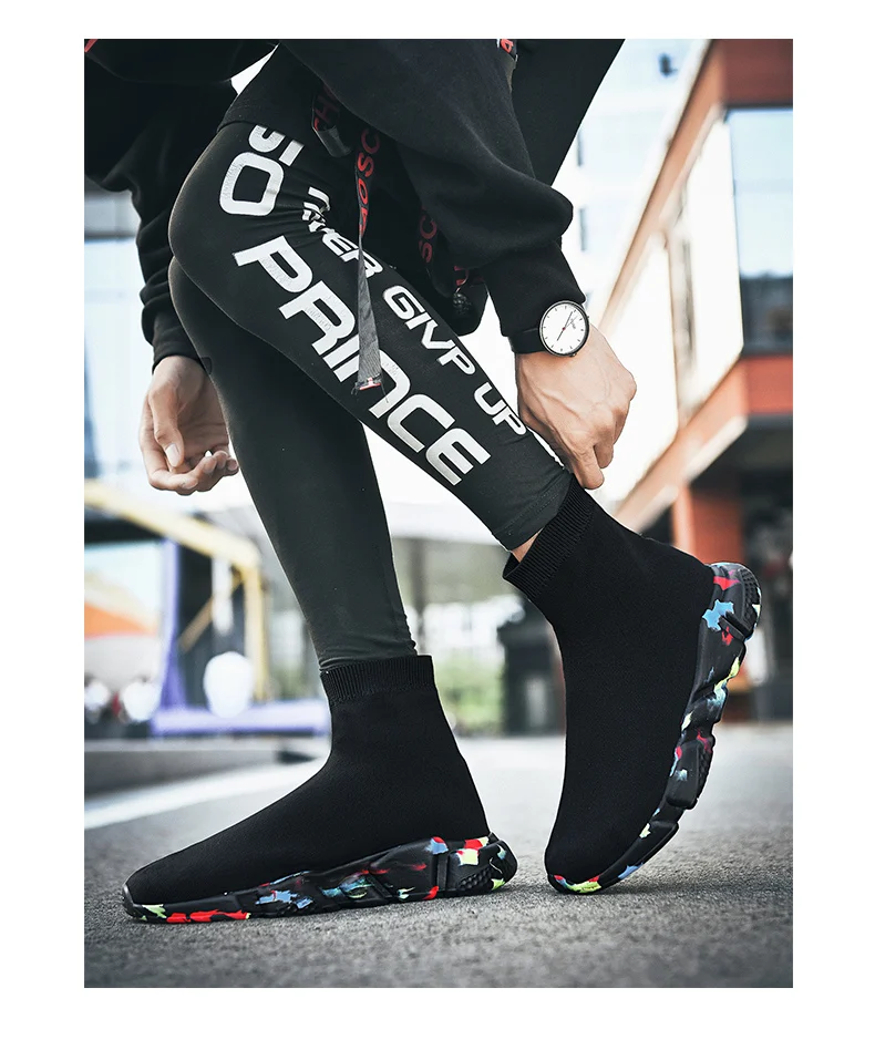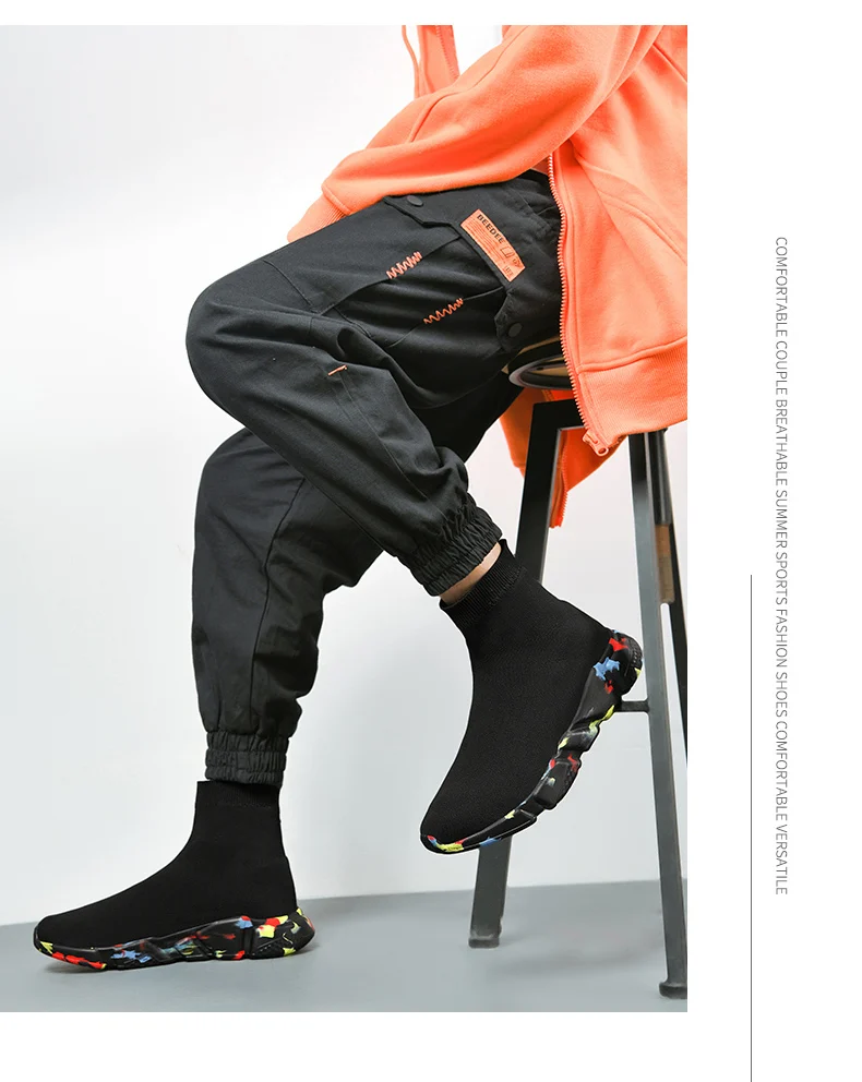 These fashionable black sneakers for men are lightweight and designed with a sock-like fit, making them comfortable for running and everyday wear. The sneakers are stylish and versatile, für verschiedene Gelegenheiten geeignet. They provide excellent support and cushioning for the feet, making them ideal for long hours of wear. The sneakers feature a modern design that will keep you looking on-trend while providing functionality for your active lifestyle. Whether you are hitting the gym or running errands, these sneakers are a great choice for a comfortable and fashionable footwear option.