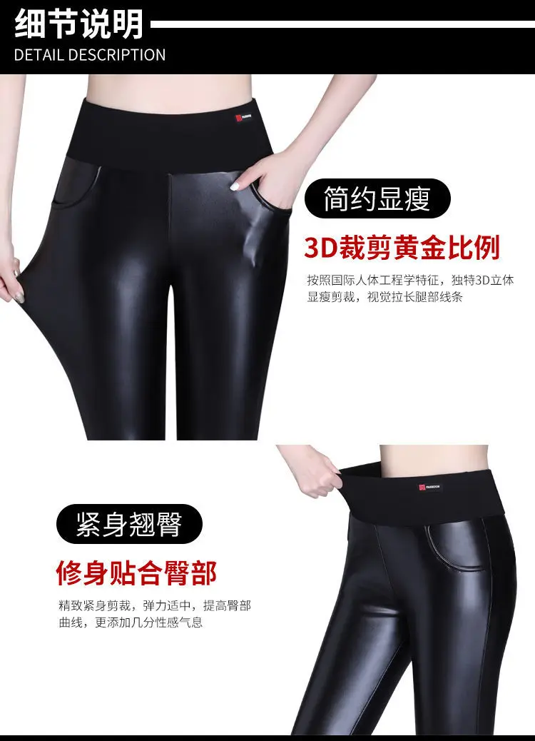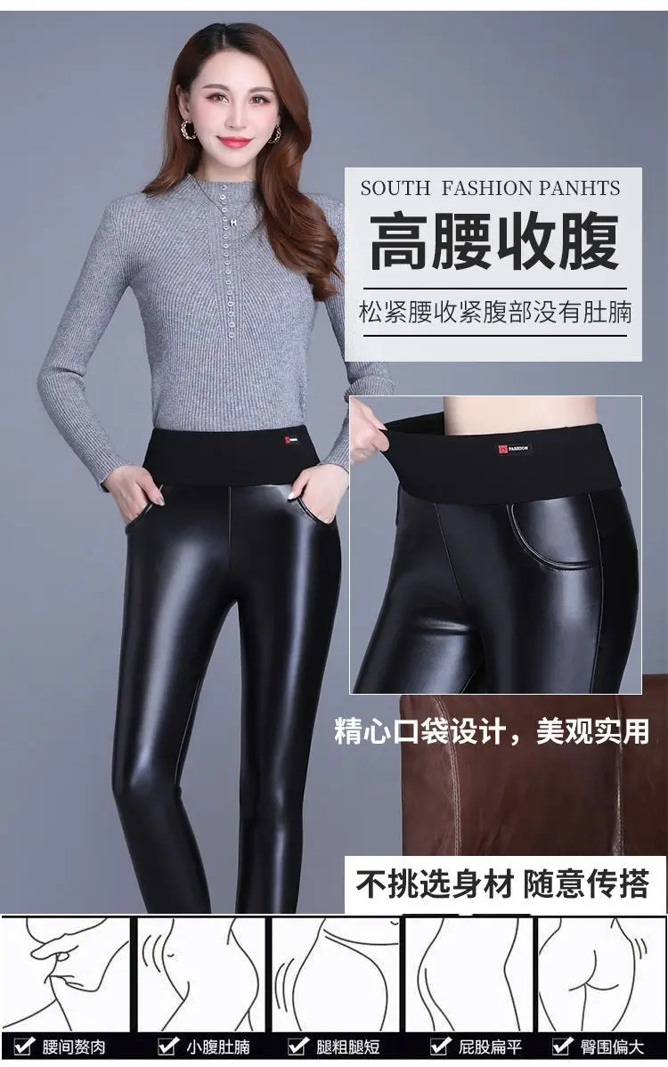 Elevate your winter wardrobe with our stylish Fleece Leather Pants for Women. Aus hochwertigen Materialien hergestellt, these pants are designed to keep you warm and fashionable during the colder months. The high waist and tight fit flatter your figure, while the fleece lining adds an extra layer of comfort. Perfect for pairing with your favorite boots and sweaters, these pants are a must-have for any fashion-forward woman. Update your autumn and winter wardrobe with these trendy Fleece Leather Pants today!