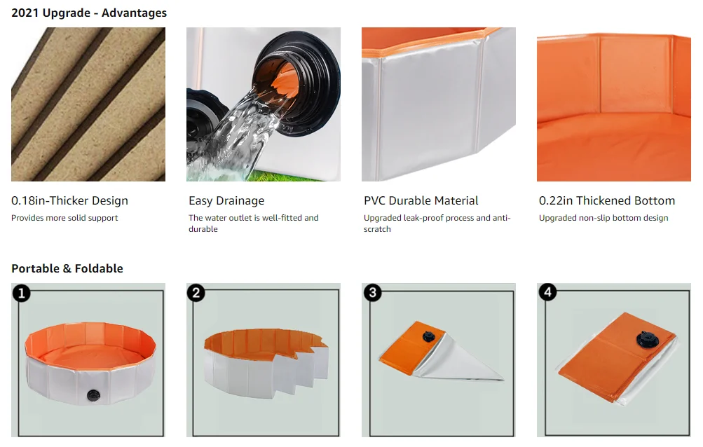 „Make a splash this summer with our Foldable Dog Swimming Pool! Perfect for keeping your furry friend cool and entertained, this durable pool is also great for kids to play in. Whether you’re indoors or outdoors, this versatile pool is perfect for any summer day. Its foldable design makes it easy to store and transport, So können Sie es mitnehmen, wo immer Sie gehen. Get ready for hours of fun in the sun with our Foldable Dog Swimming Pool!“