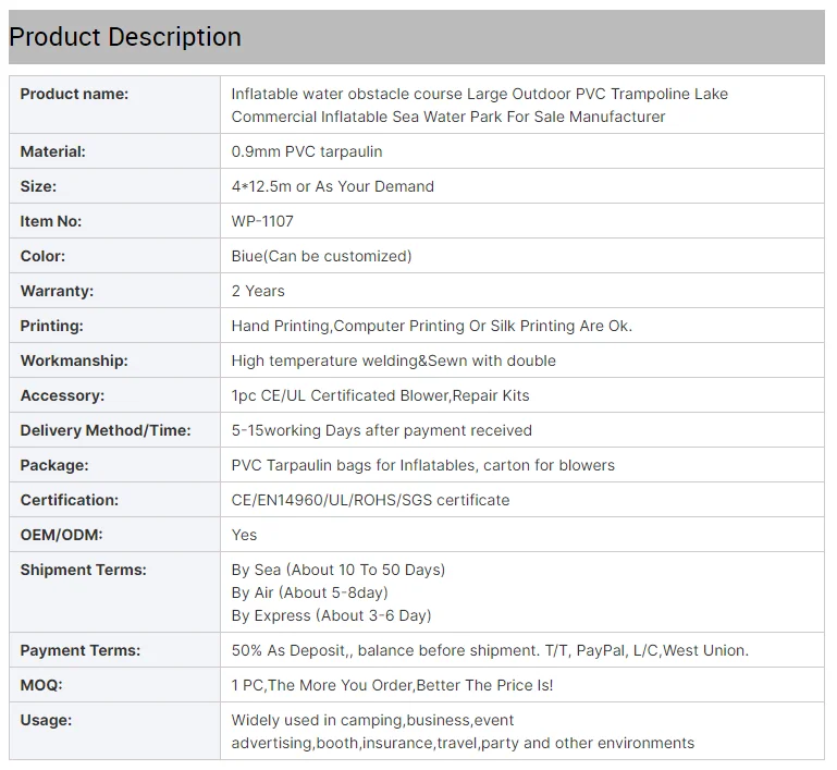 Aufblasbares Wasser Hinderniskurs Großer Outdoor PVC Trampoline Lake Com…