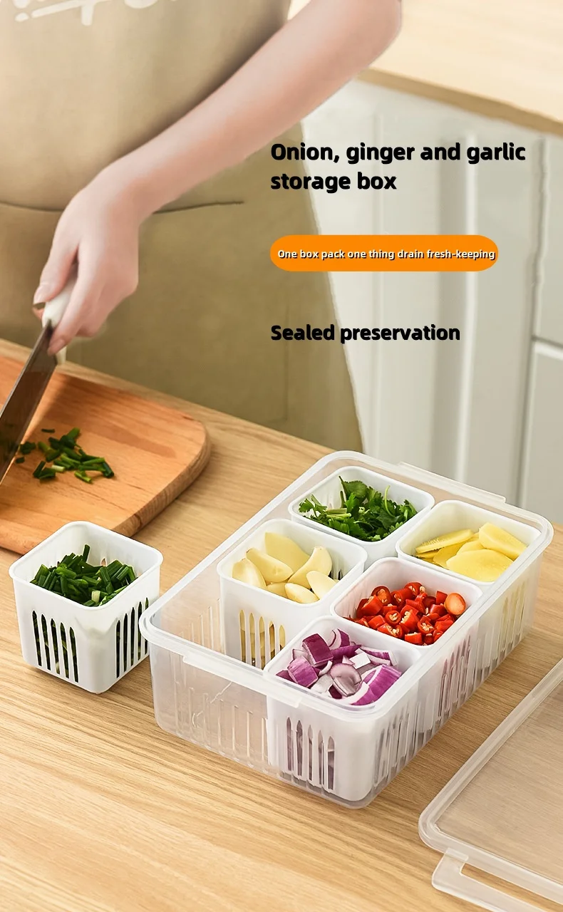 Kitchen Crisper Refrigerator Onion Ginger Garlic Storage Box Household Plastic 6 Sealed Crisper Container