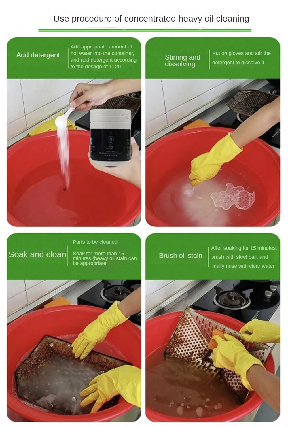 5. Gleichzeitig, Es eignet sich für Ölflecken auf der Oberfläche von Küchenutensilien wie Edelstahl, Keramikfliesen, Emaille, Backfarbe, usw. Regelmäßiges Schrubben kann die Küche sauber und hygienisch halten.