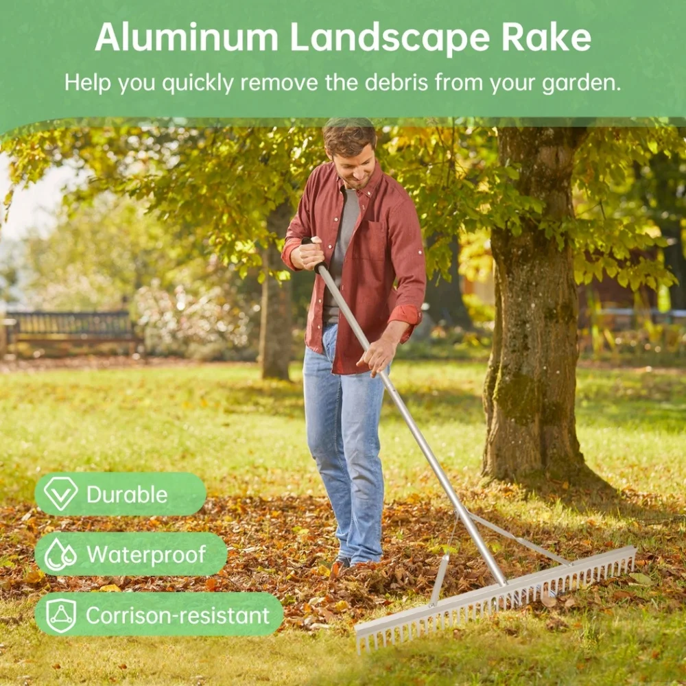 Crafted from quality aluminum, this landscape rake is lightweight, resistant to rust and corrosion, einfach zu säubern, and durable to withstand frequent use. It is a sleek and multifunctional rake that can be used for years to come.