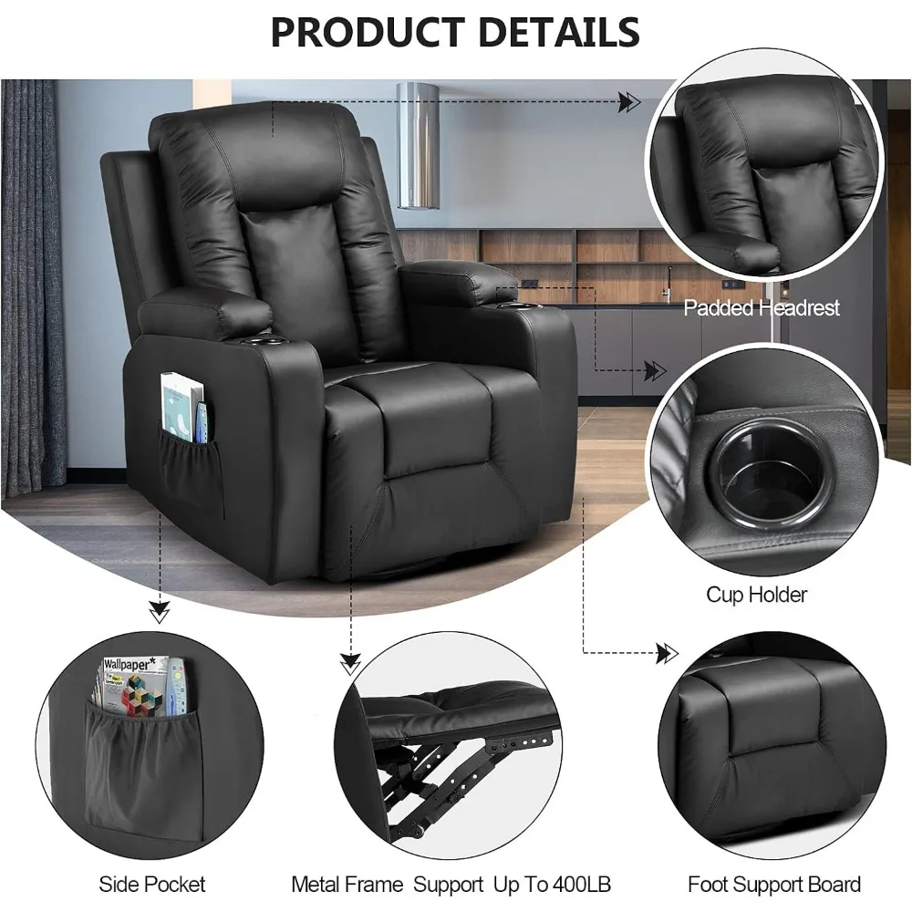 Egal, ob Sie fernsehen, ein Buch lesen, Oder einfach faulenzen, Unser Leder -Liegestuhl -Rocker mit erhitzter Massage Ergonomische Lounge 360 wird sicher Ihr Lieblingsplatz zum Entspannen werden. Aktualisieren Sie Ihr Entspannungserlebnis heute mit diesem erstklassigen Stuhl.