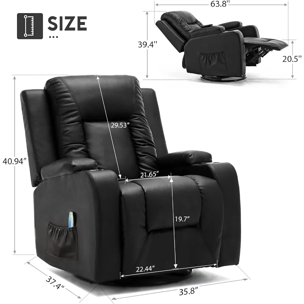 - Entspannen Sie sich in diesem wunderbaren Stuhl mit Liegen, rocken, Massage, beheizte und schwenkbare Merkmale.360 Grad drehend und 150 Abschlussfunktionen. Maße: 37.4 X 35.8 X 40.94 In. (Länge 63 in vollständig zurückgelegter Position)