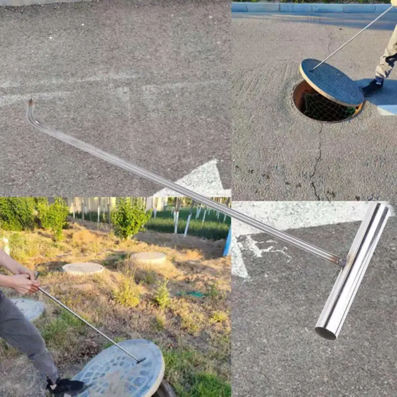 – Manhole lid hook suitable for various lifting tasks such as opening steel grates and lifting septic tank lids.