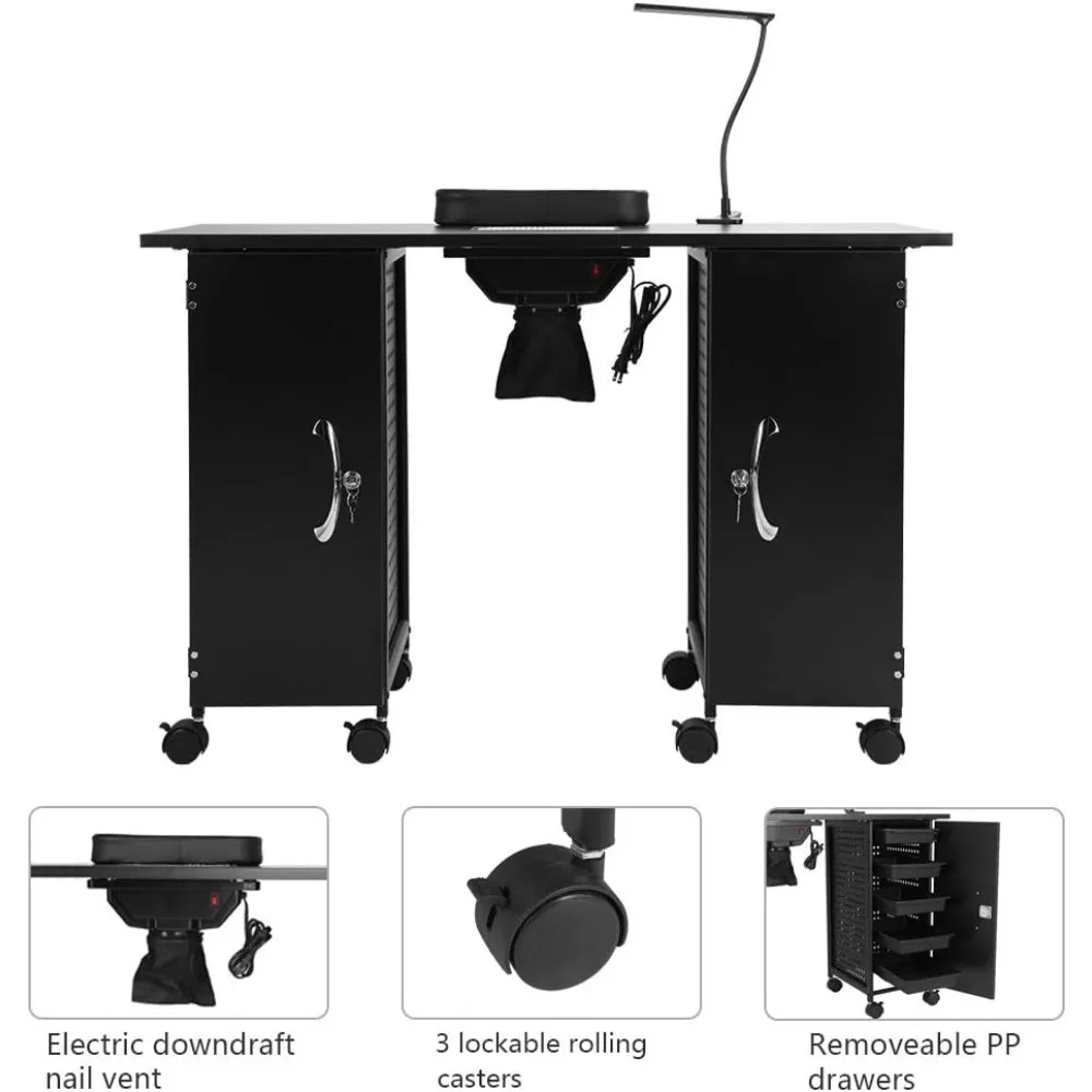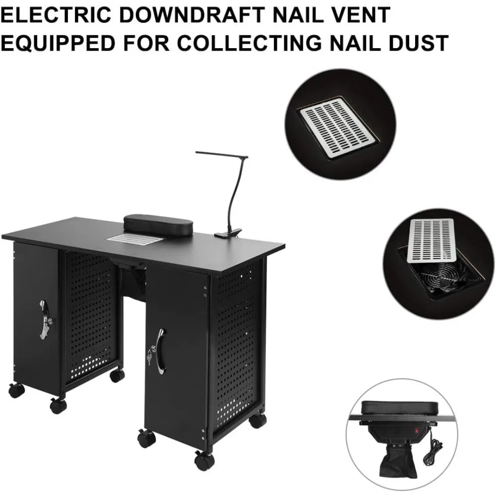 - DUST COLLECTOR & WRIST REST INCLUDED: With electric downdraft vent on it, the nail desk can collect the nail dust while manicure and keep the table clean to some degree. And a wrist rest is included for comfort and convenience while manicure.