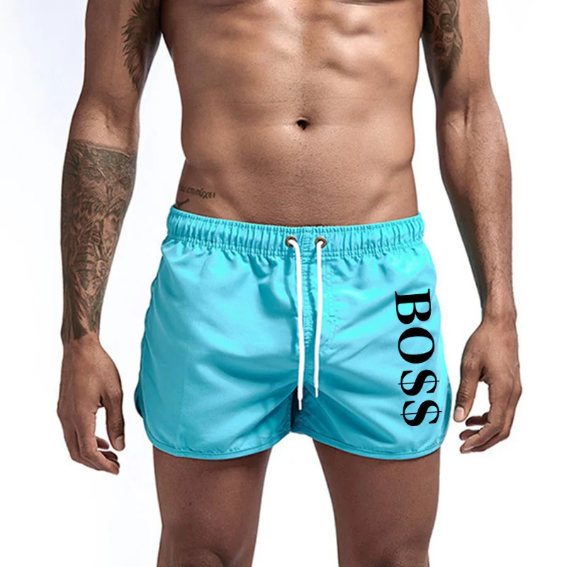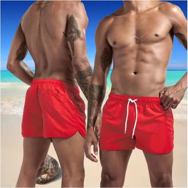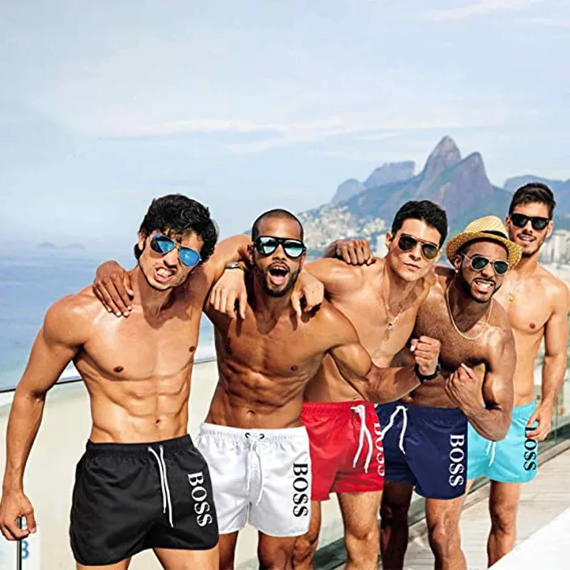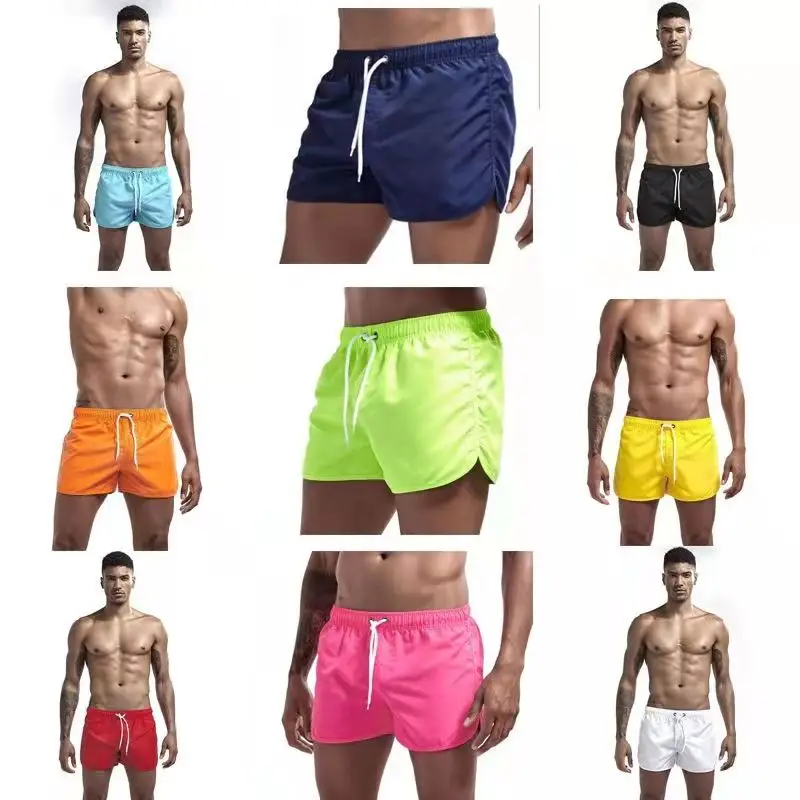 The content discusses men’s swimming shorts available in nine different colors for the summer season. These swimwear options are described as stylish and sexy beach shorts suitable for surfing and other water activities. The shorts are designed as comfortable men’s clothing pants for swimming in style during the summer months.