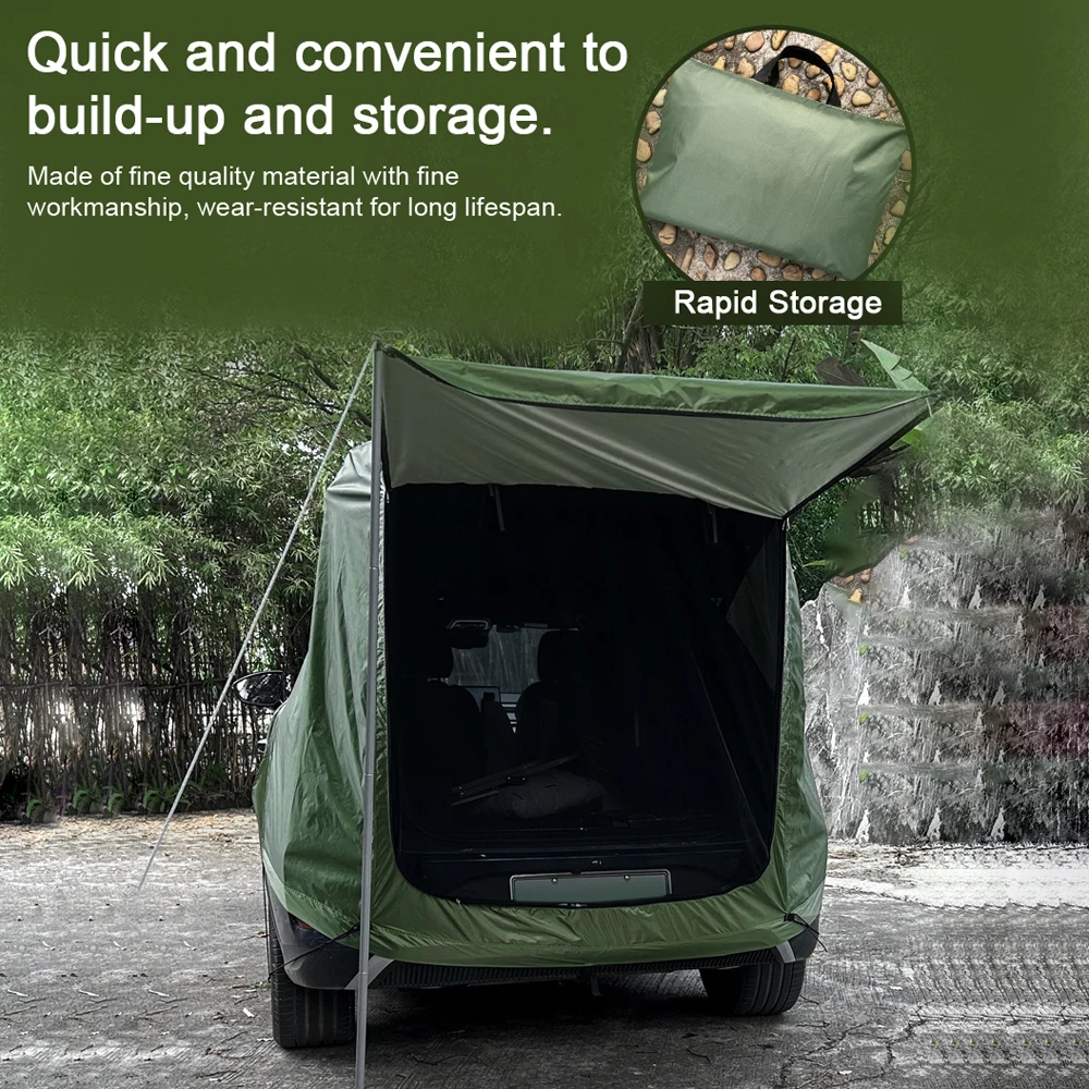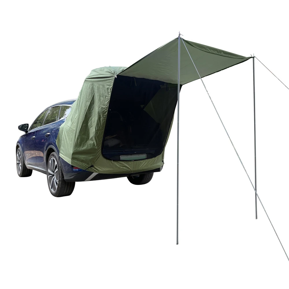 „Transform your car into a cozy camping retreat with our Outdoor Car Trunk Tent. This innovative tent attaches effortlessly to the rear of your vehicle, providing a spacious and comfortable sleeping area for your outdoor adventures. The built-in canopy offers protection from the elements, while the durable materials ensure long-lasting performance. Whether you’re planning a weekend camping trip or a picnic in the park, this tent is sure to enhance your outdoor experience. Don’t let your car trunk go to waste – turn it into your own personal campground with our Car Trunk Tent!“
