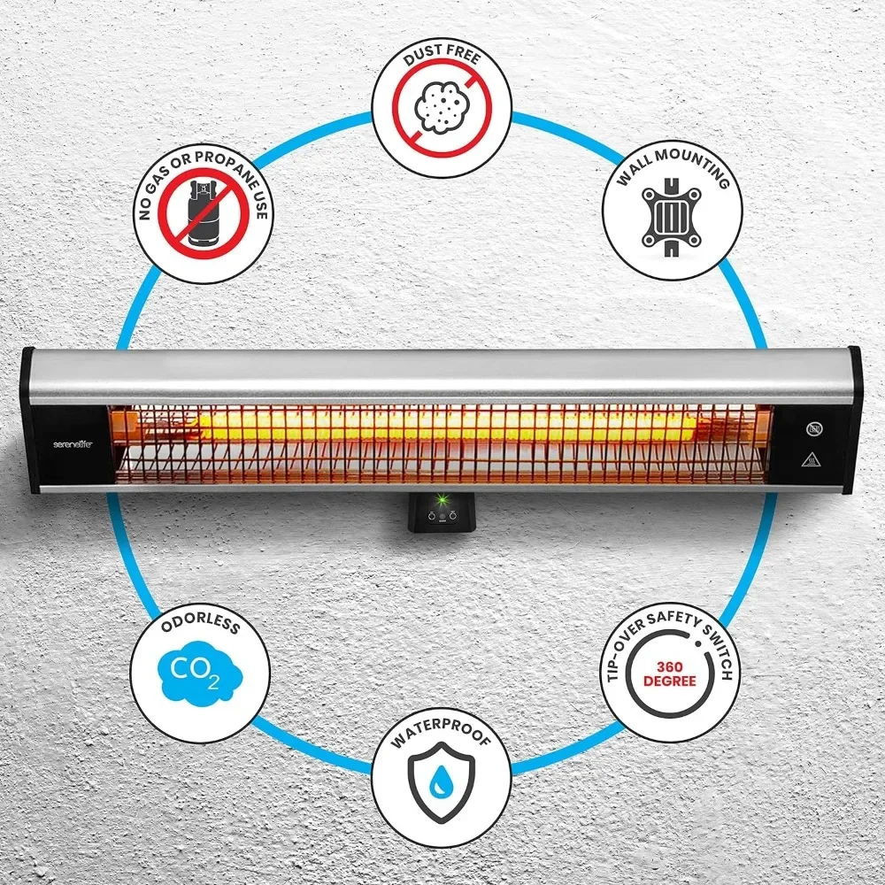 ENERGY EFFICIENT: SereneLife outdoor heaters for patio waterproof heats up instantly and directly transfers heat to the body making it highly energy-efficient and it is also odorless and doesn’t need gas or propane making it environment friendly