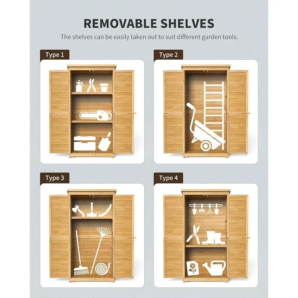 - Abschließbare Türen mit Rollladen: Der vertikale Aufbewahrungsschrank für den Außenbereich mit Holzriegel bewahrt alle Ihre Gartengeräte sicher auf, und der starke Magnet der Türen erleichtert das Öffnen und Schließen der Türen. Außerdem, Der Outdoor-Organizer ist mit einem Fensterladen-Design ausgestattet, ist gut für Platten, bei denen Wasser austritt, und hat eine bessere Belüftungswirkung.