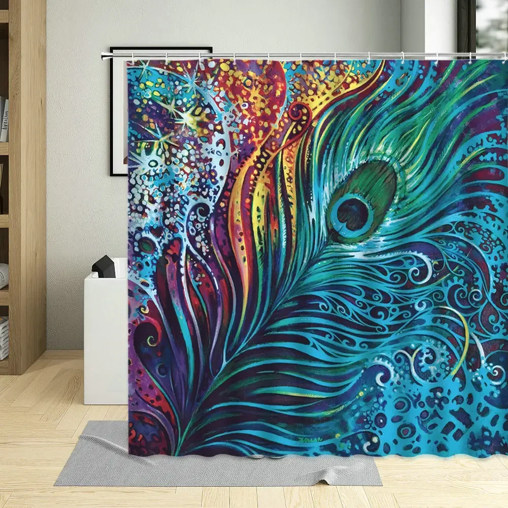 Peacocks Feathers Waterproof Bathroom Shower Curtain Elegant Green Bird Feather For Art Decor Screens Bathtub Curtains With Hooks