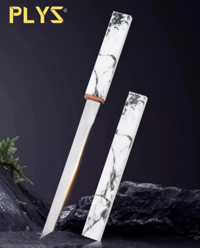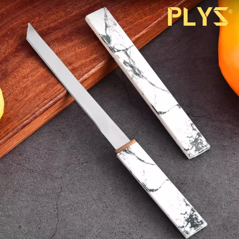 The PLYS-Fruit Knife is a sharp Japanese utility knife with high hardness, designed for self-defense and outdoor fishing. It comes with a sheath for safe storage and portability. The knife is suitable for men and is compact enough to be carried in a pocket. Its strong blade makes it ideal for cutting fruits or for use as a defensive tool in various situations. The knife is durable and versatile, making it a useful tool for outdoor activities and everyday use.