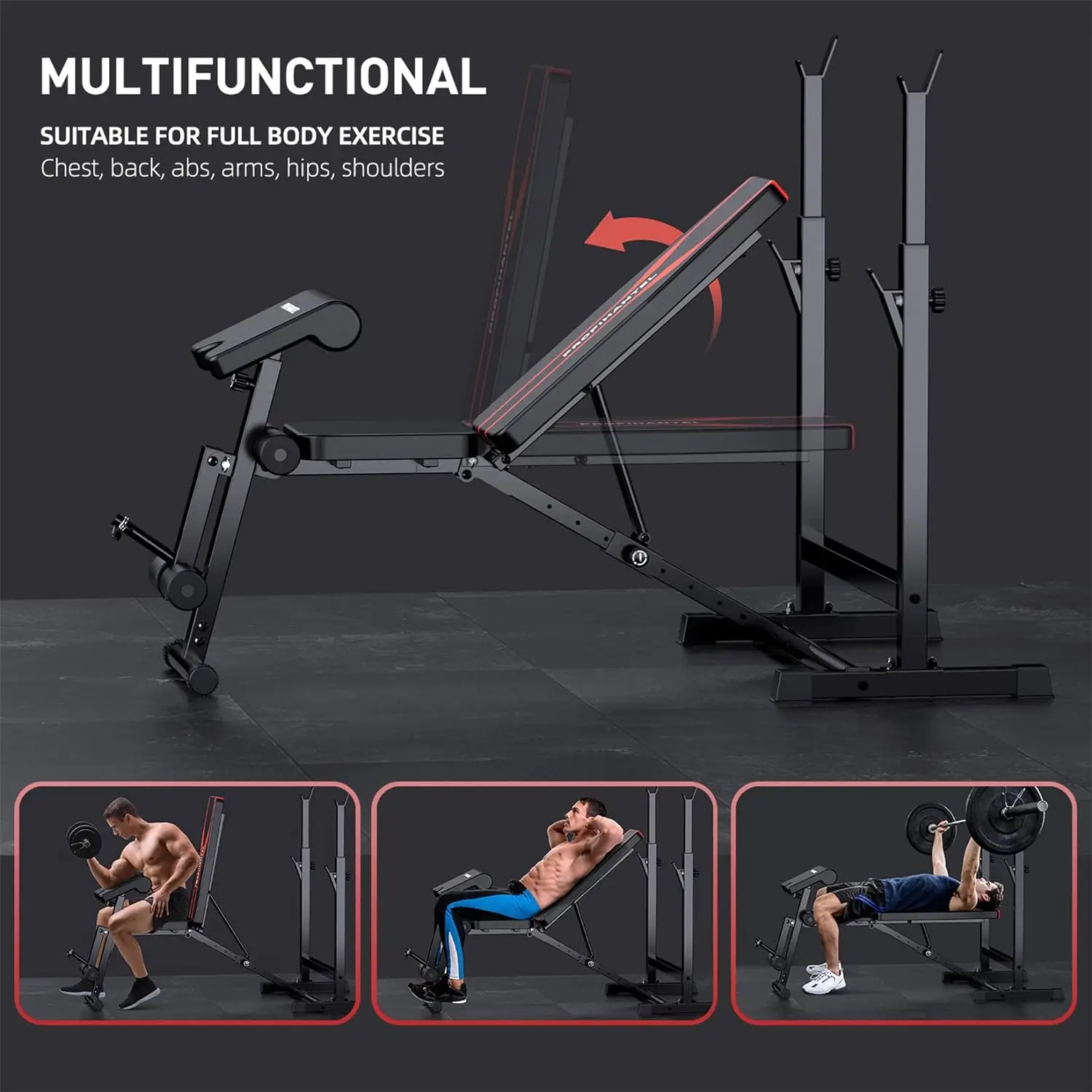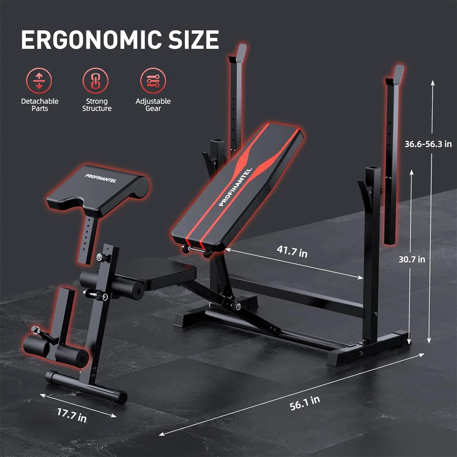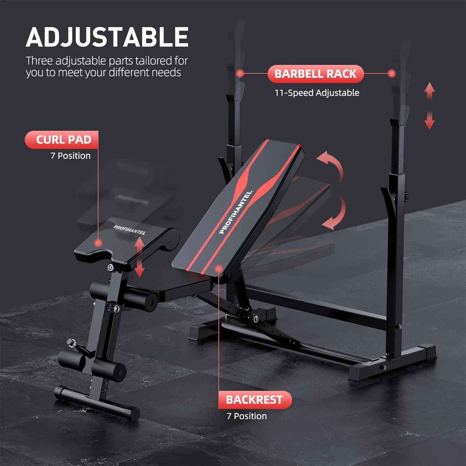 Profihantel einstellbare Gewichtsbank, Olympische Trainingsbank, Bankdrücken Set mit Squat Rack und Bank, Beinübungen Preacher Curl Rack, Heimübungsausrüstung