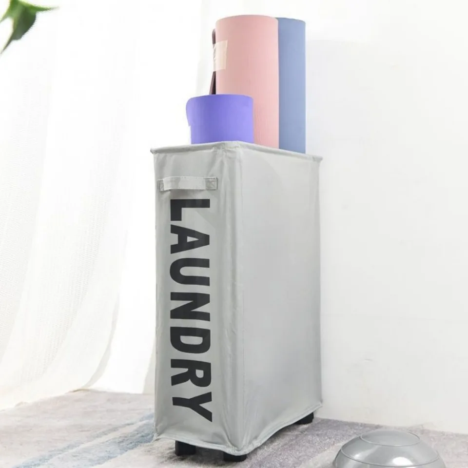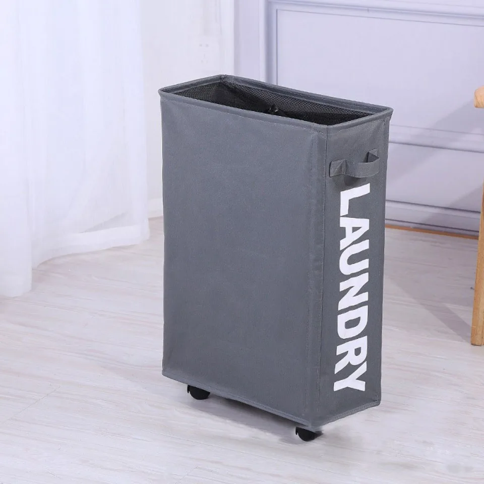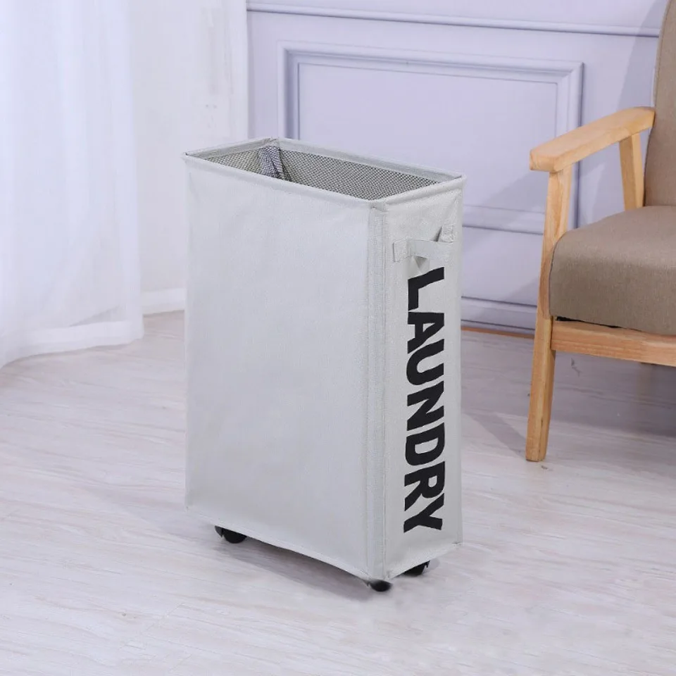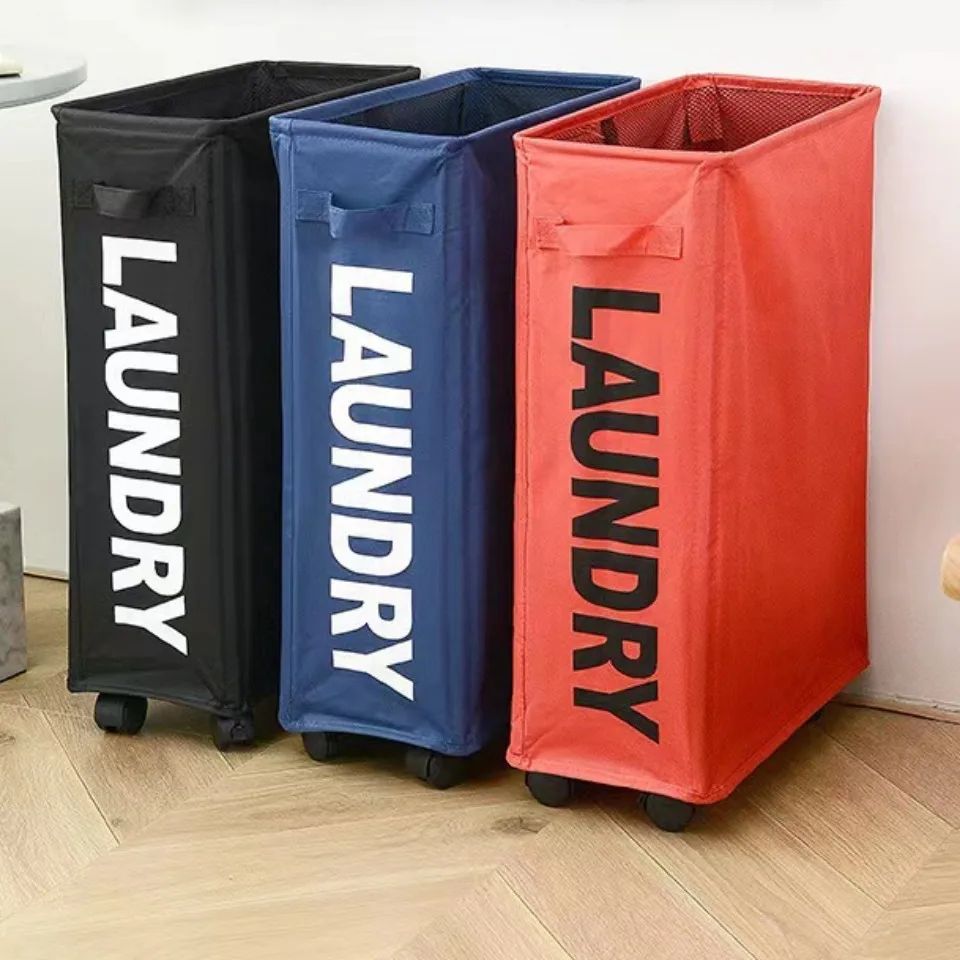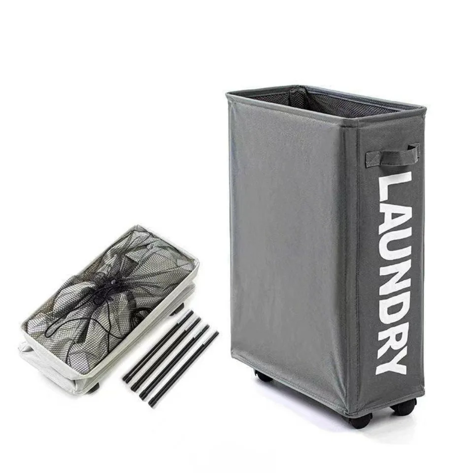 Rolling Laundry Basket Organizer Foldable Dirty Clothes Storage Bag Yoga Mat Classification Box Oxford Cloth Pulley Linen Basket