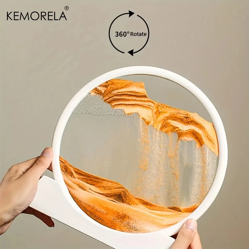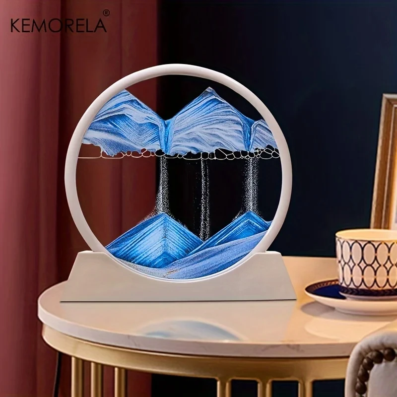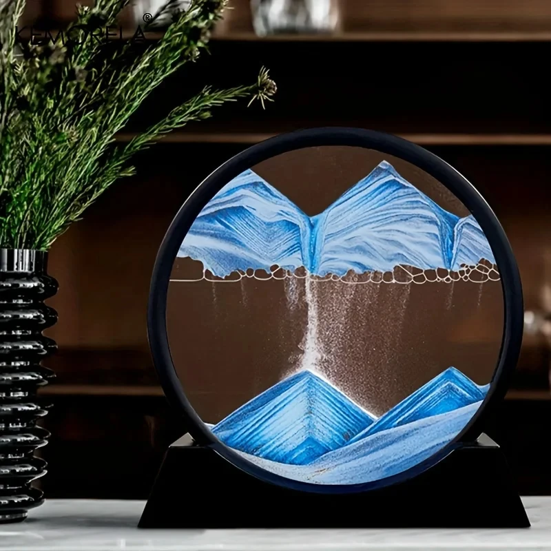 18.5CM 3D beweglicher Sand-Kunstbild, rundes Glas, Ozean-Sandlandschaft, Sanduhr, Treibsand, Kunsthandwerk, fließender Sand, Malerei, Heimdekoration, Geschenk