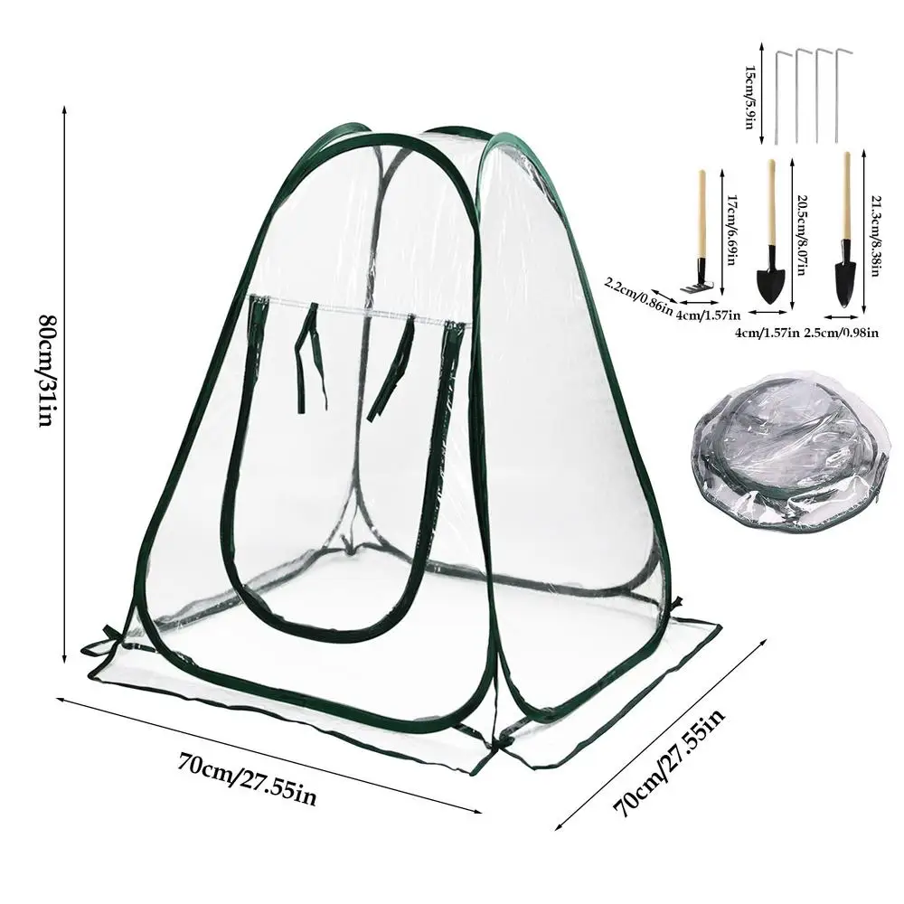 4.Stabil und langlebig: With its sturdy PVC construction, along with four steel floor nails, this pop-up greenhouse provides unparalleled stability and is resistant to wind. Plus, it comes with a handy three-piece garden shovel to make gardening tasks a breeze.