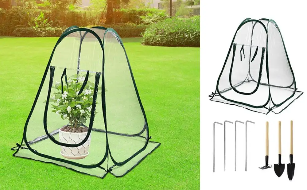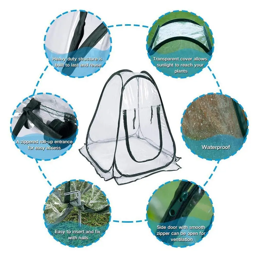 6.Protect your indoor plants during winter with transparent Pop up Greenhouse. Easy to install and comes with four steel floor nails for stability.
