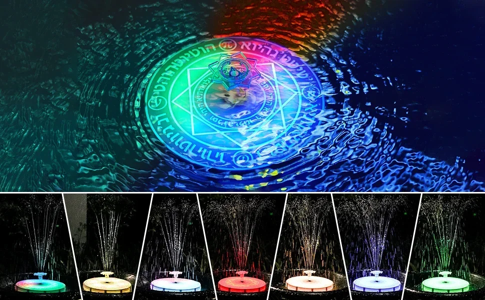 Different from the black panel fountain in the market, we use light-emitting panels with magic retro pattern, hinzufügen 6 optional lighting modes, make your pond is special and beautiful. Support remote control, just moving your fingers, you can change the fountain color and mode easily.