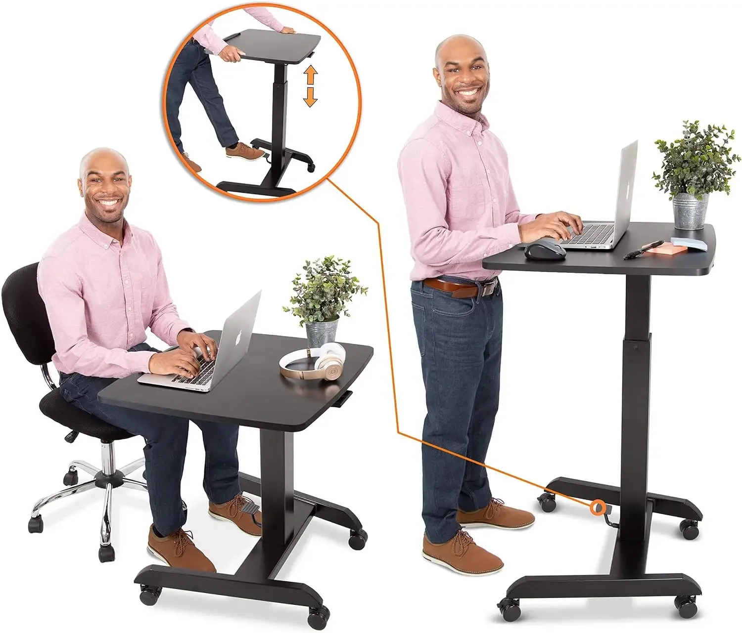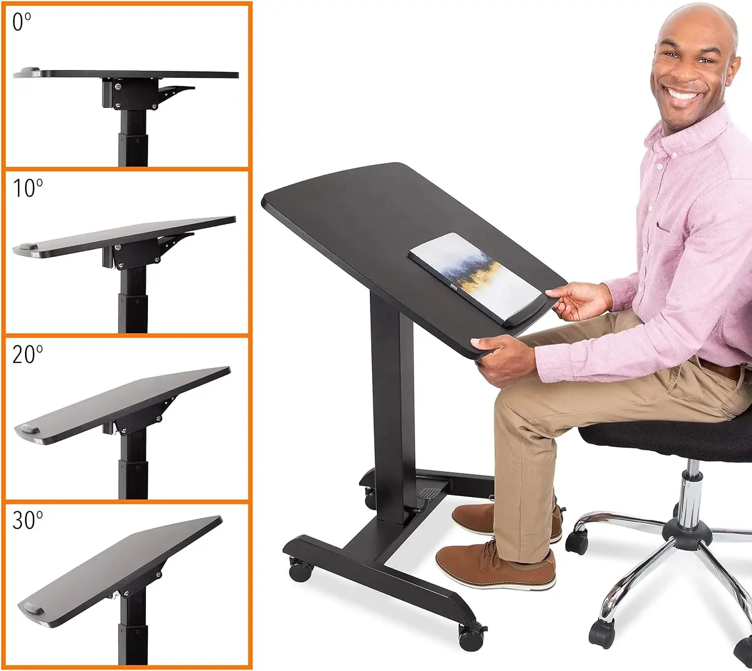 Stehen Sie stetig multifunktionales mobiles Podiumschalter | Tragbarer Sit, um Redtret mit pneumatischer Höhenanpassung zu stehen & Tilting Desktop | Rolling Laptop Stand | Mobile Desk for School, Heim, Büro (Schwarz)