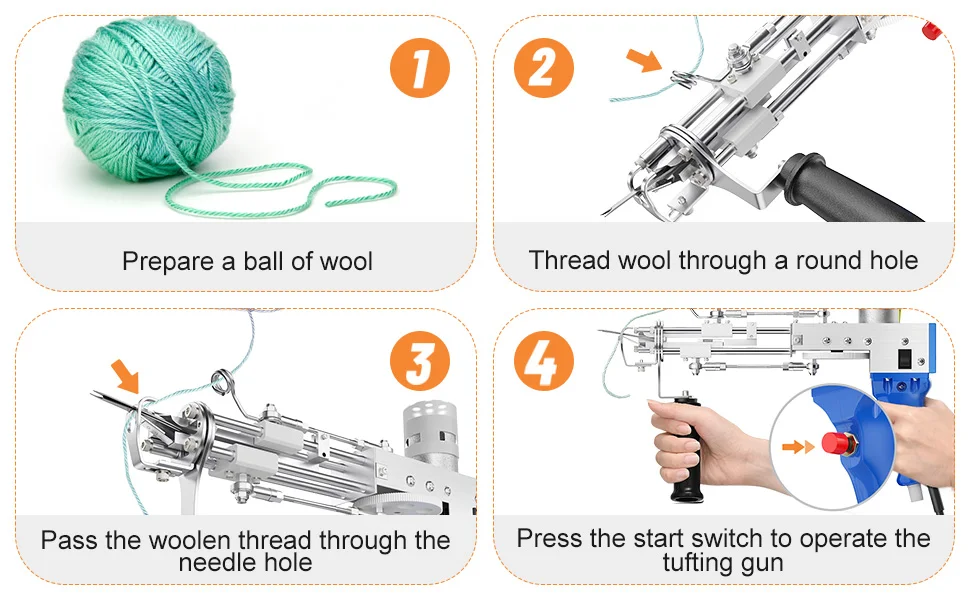 [Sicherheitsschutz]: The tufting gun has over-voltage, over-current, and short-circuit protection functions, which can avoid accidents during use